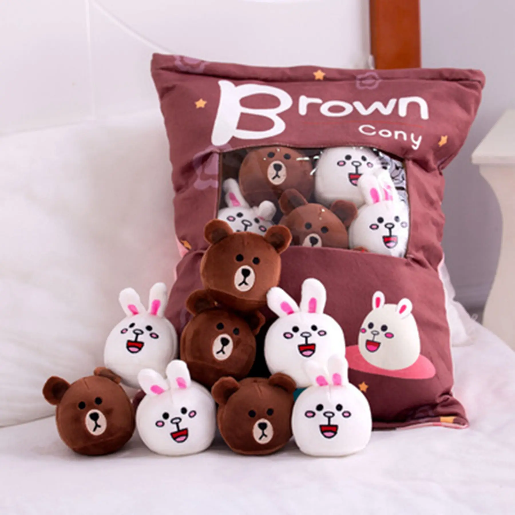 8pcs/lot Cute Animal Brown Cony Bag Plush Doll Stuffed Bunny Candy Pudding Cushion/Pillow Kids/Girl Birthday Gifts