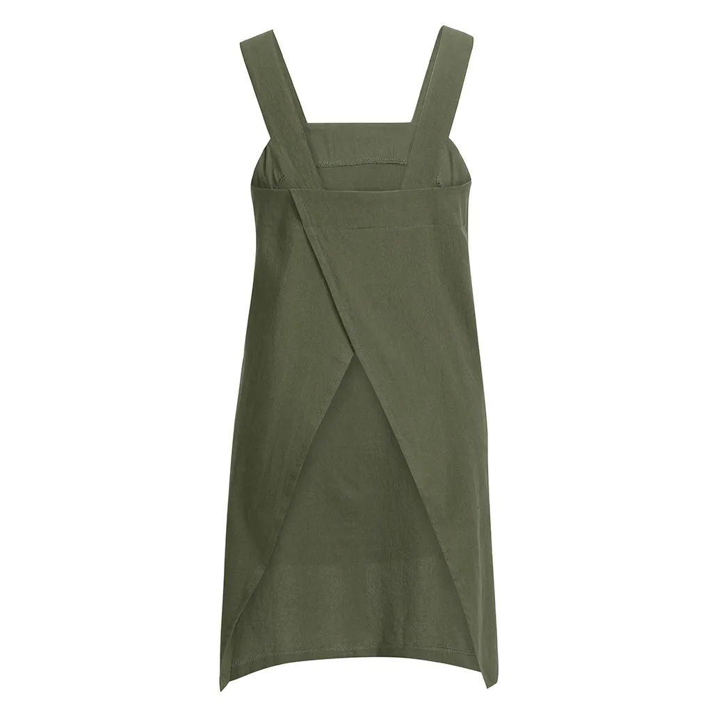 Женское хлопковое льняное платье с квадратным перекрещивающимся фартуком для садовой работы