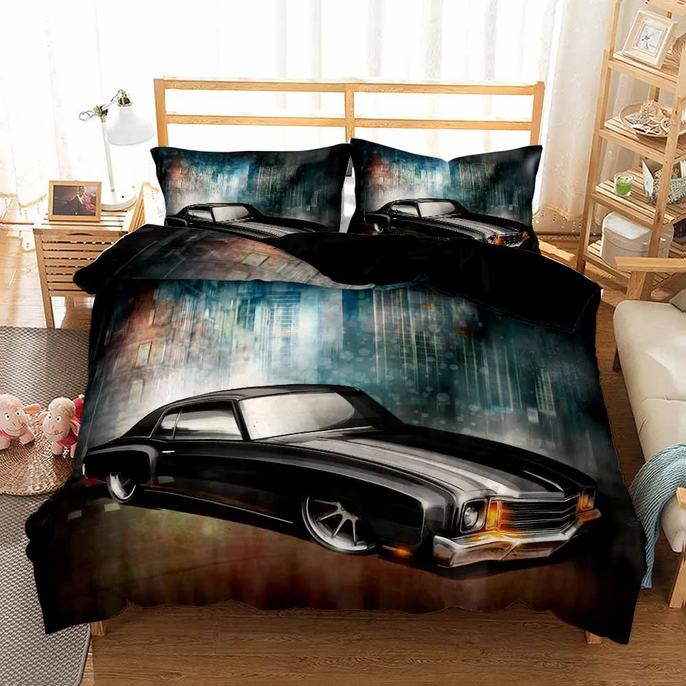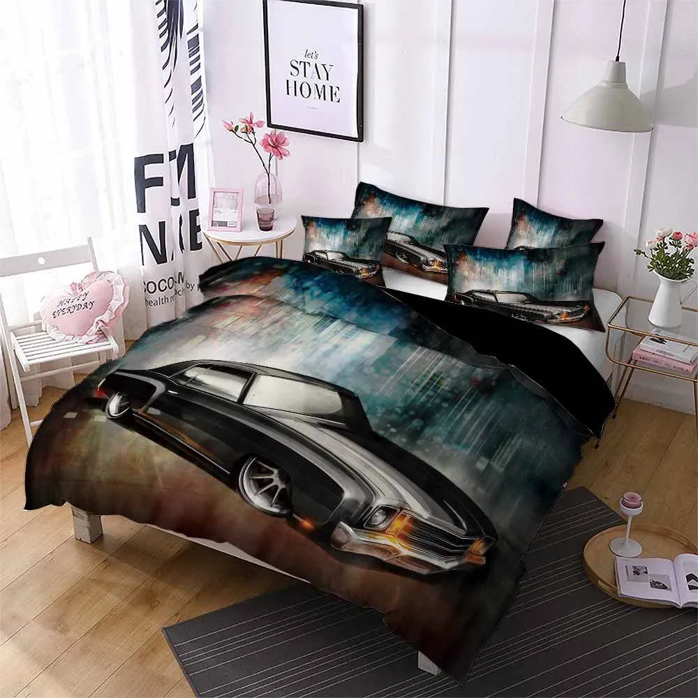 Крутой мотоцикл постельные принадлежности наборы 3D печать пододеяльник черный автомобиль пододеяльник Королева Король Размер удобный чехол домашний текстиль