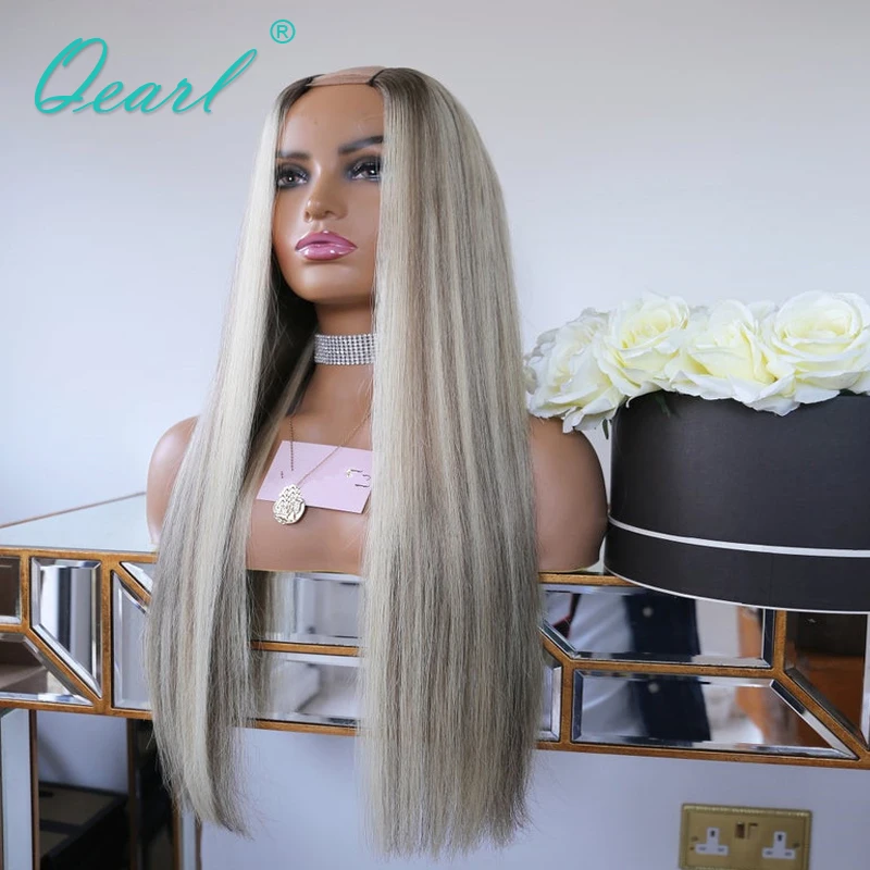 Серый пепельный блонд подчеркивает цвет U часть парики шелковистые прямые человеческие волосы парик 2x4 открытие Омбре Remy волосы машина сделано 150% Qearl