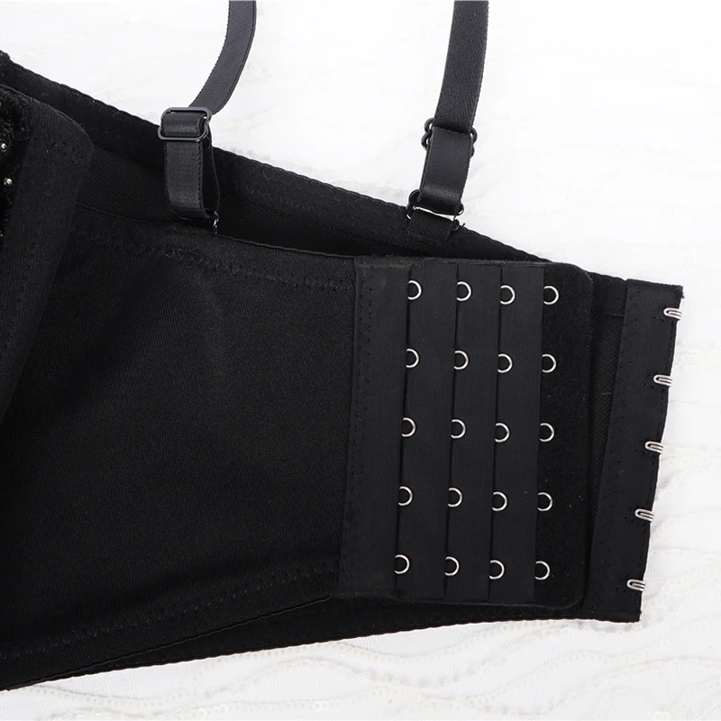 Полупрозрачное кружево спереди с бисером и блестками и застежкой на крючок сзади