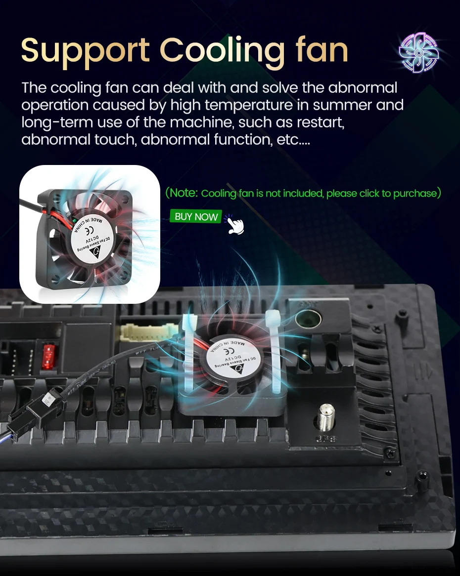 Вентилятор охлаждения может справиться и решить ненормальную работу, вызванную высокой температурой летом и долгосрочным использованием машины, например, перезапуск, аномальное касание, ненормальная функция и т. Д....
