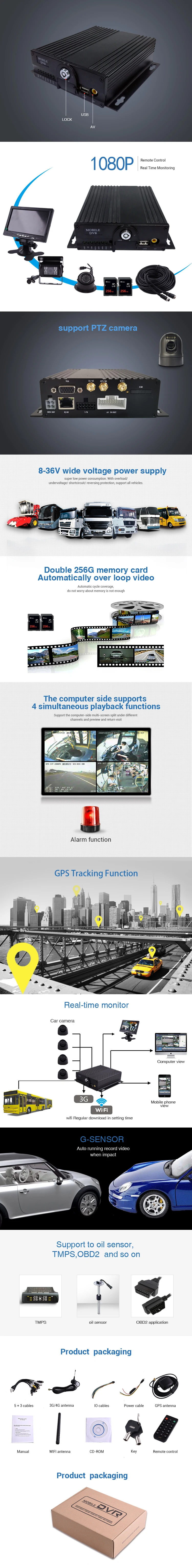 Это мобильный телефон цифровой видео Регистраторы, который поддерживает 4 канала камеры 1080P / 960P / 720P / D1 режим аудио и видео запись и воспроизведение видео в одно и то же время, с функцией сети. Продукт использует ARM DSP двухъядерный высокоскоростной процессор, встроенная операционная система Linux, И сочетает в себе H.265 передовое кодирование видео и другие технологии. Он интегрирует технологию защиты от сбоя питания, технологию поглощения ударов на жестком диске, технологию нагрева жесткого диска и дизайн транспортного средства с широким напряжением в одном. Он может быть широко использован в грузовых автомобилях, автобусах, логистических транспортных средствах, школьных автобусах, полицейских автомобилях, транспортных средствах, нефтяных грузовиках и других транспортных средствах мониторинга.