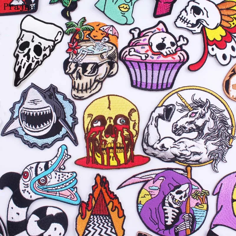 Утюжок на заплатках DIY панк череп вышитые патчи для одежды наклейка на одежду панк лошадь/закуска патчи для куртки