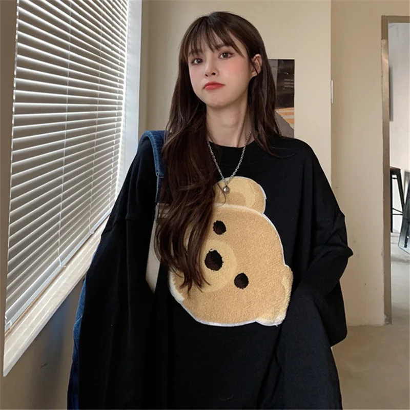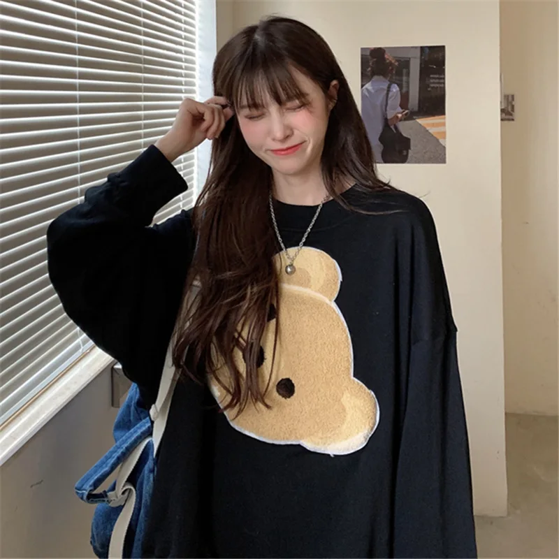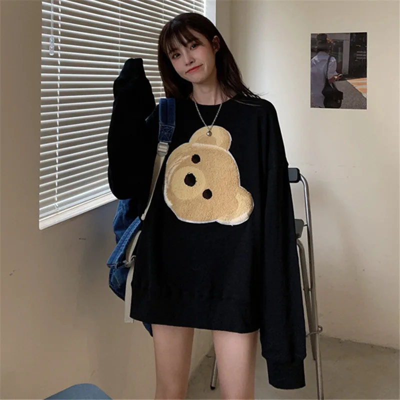 Za 2020 Новинка Harajuku мультяшная Толстовка большого размера с милым медведем свитшоты kawaii пуловер с изображением медведей корейский топ с круглым вырезом толстовки для женщин