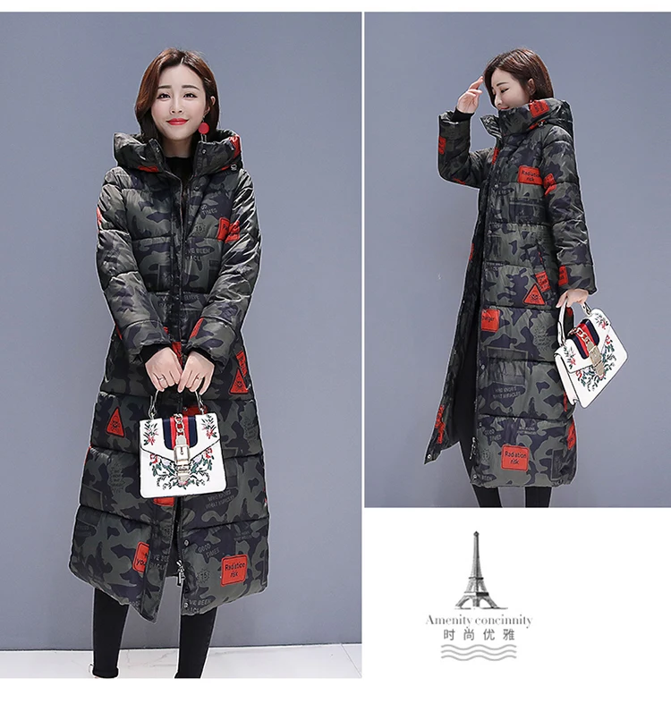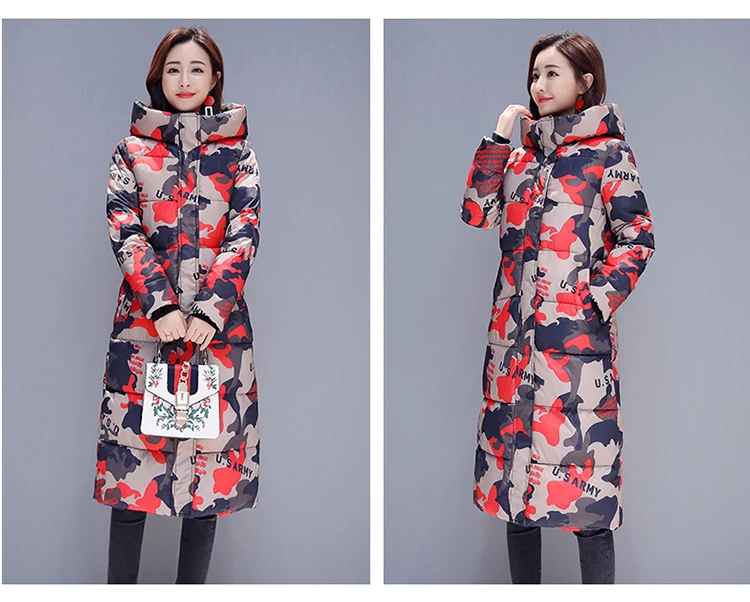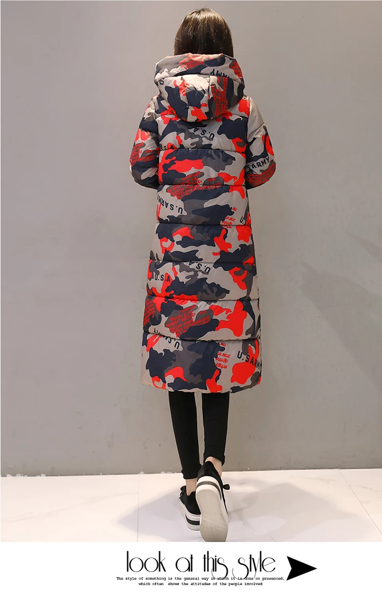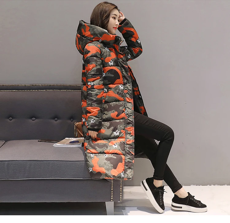 Новая женская зимняя куртка, камуфляжная Женская куртка с капюшоном, теплое пальто размера плюс для женщин на осень и зиму FC921