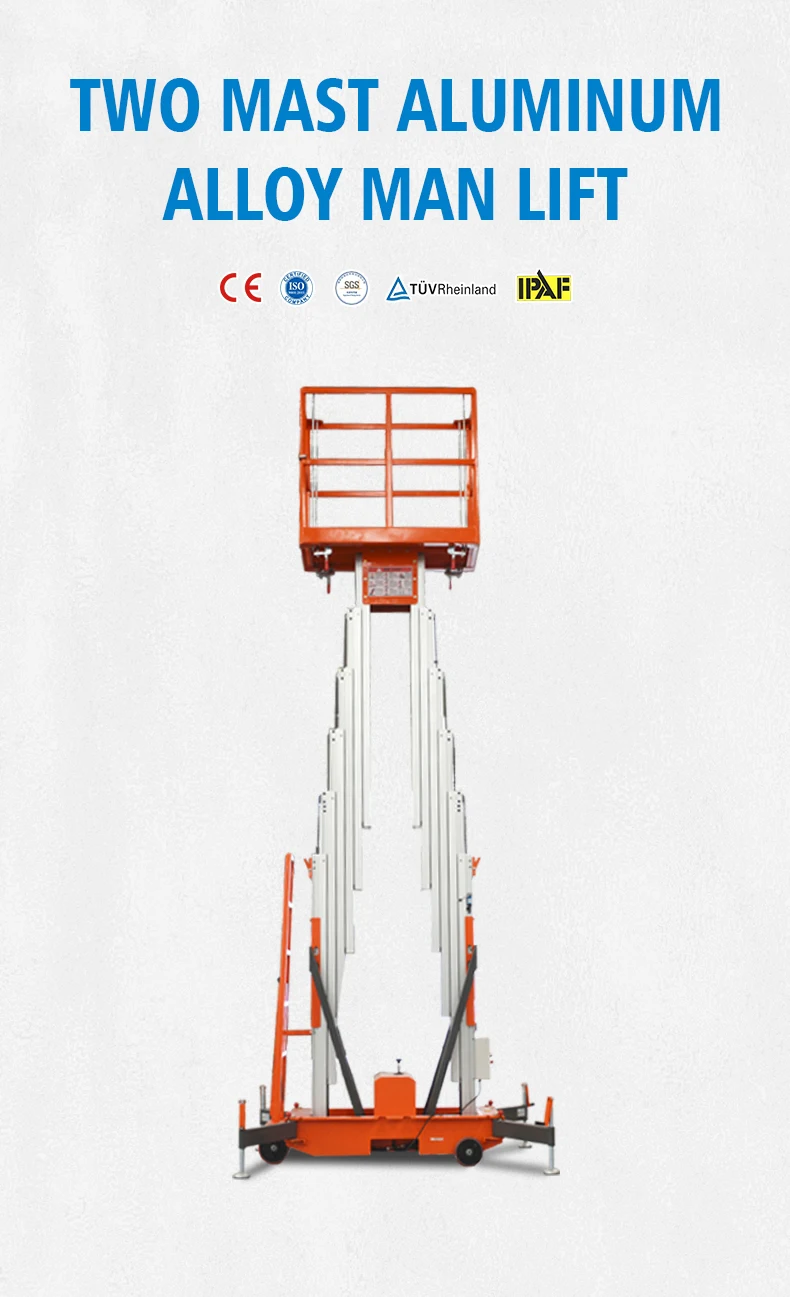 Двухмачтовый подъемникВ основном, как одномачтовый подъемник, нам просто нужно осесть платформу, прежде чем мы ее поднимем. Высота подъема составляет 6-14 м, и он может загружать 150-300 кг.