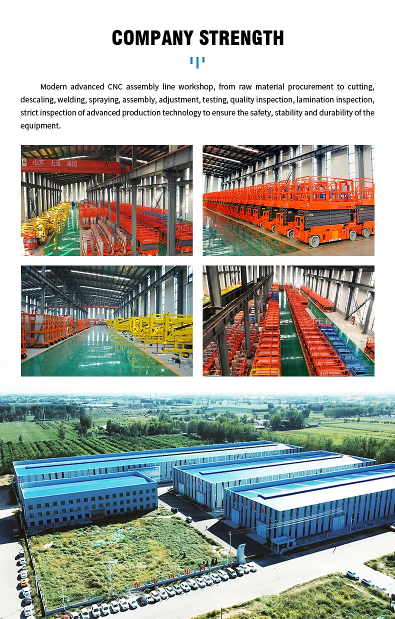 Shandong Qiyun Group Co., Ltd. была основана в 2014 году. Компания расположена в цзяне, Шаньдун, который известен как «Родной город гидравлической подъемной платформы Китая». Первоначально сформированный семью компаниями, специализирующийся на производстве и продаже элеваторных продуктов, он теперь превратился в профессиональную групповую компанию, интегрирующую исследования и разработки, производство, продажи и экспорт. У нас есть не только все виды передовых обычных гидравлических подъемников, но и индивидуальные продукты в соответствии с потребностями клиентов.