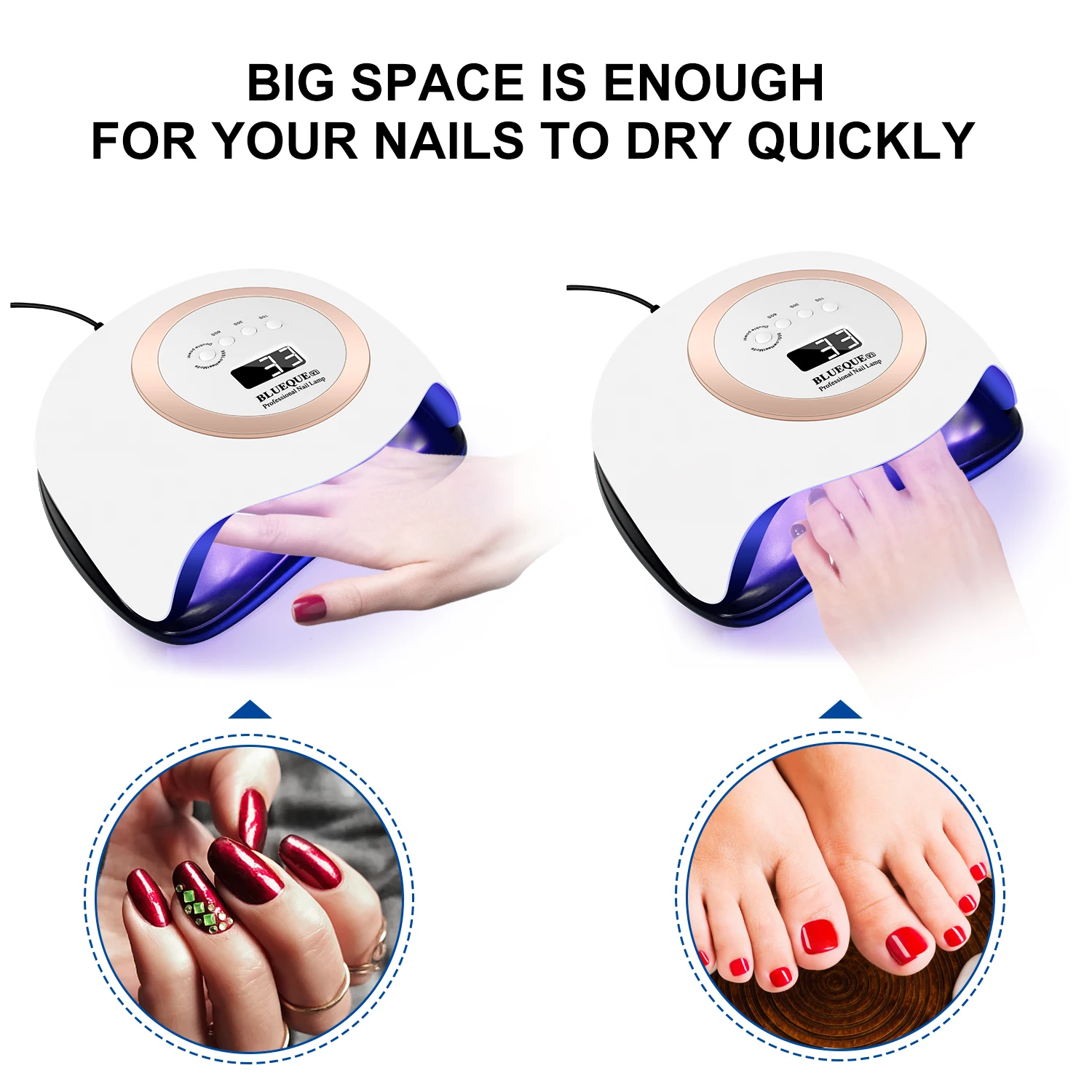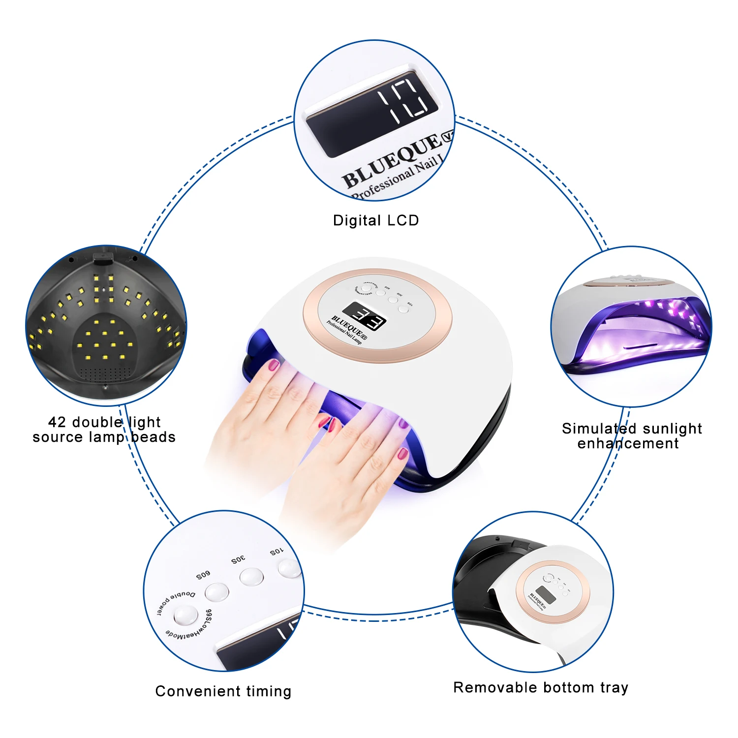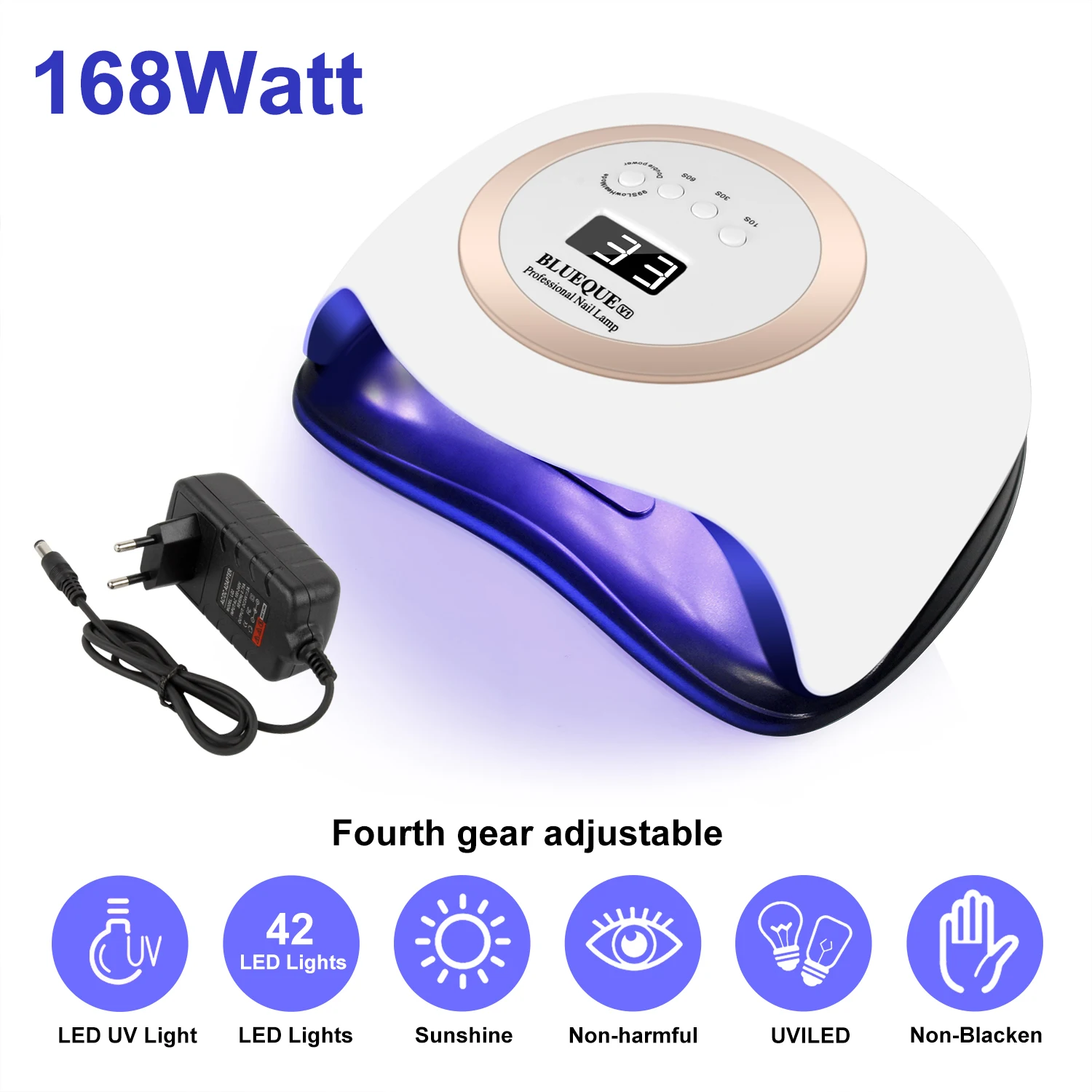 168 Вт Сушилка для ногтей лампа, с светодиодный дисплей Смарт Автоматический Датчик Сушилка для ногтей 4 таймера, гель лак для ногтей шеллак набор укрепляющий клей, с 42 огнями кошачий глаз клей Съемное основание.