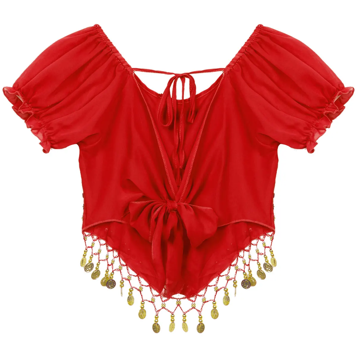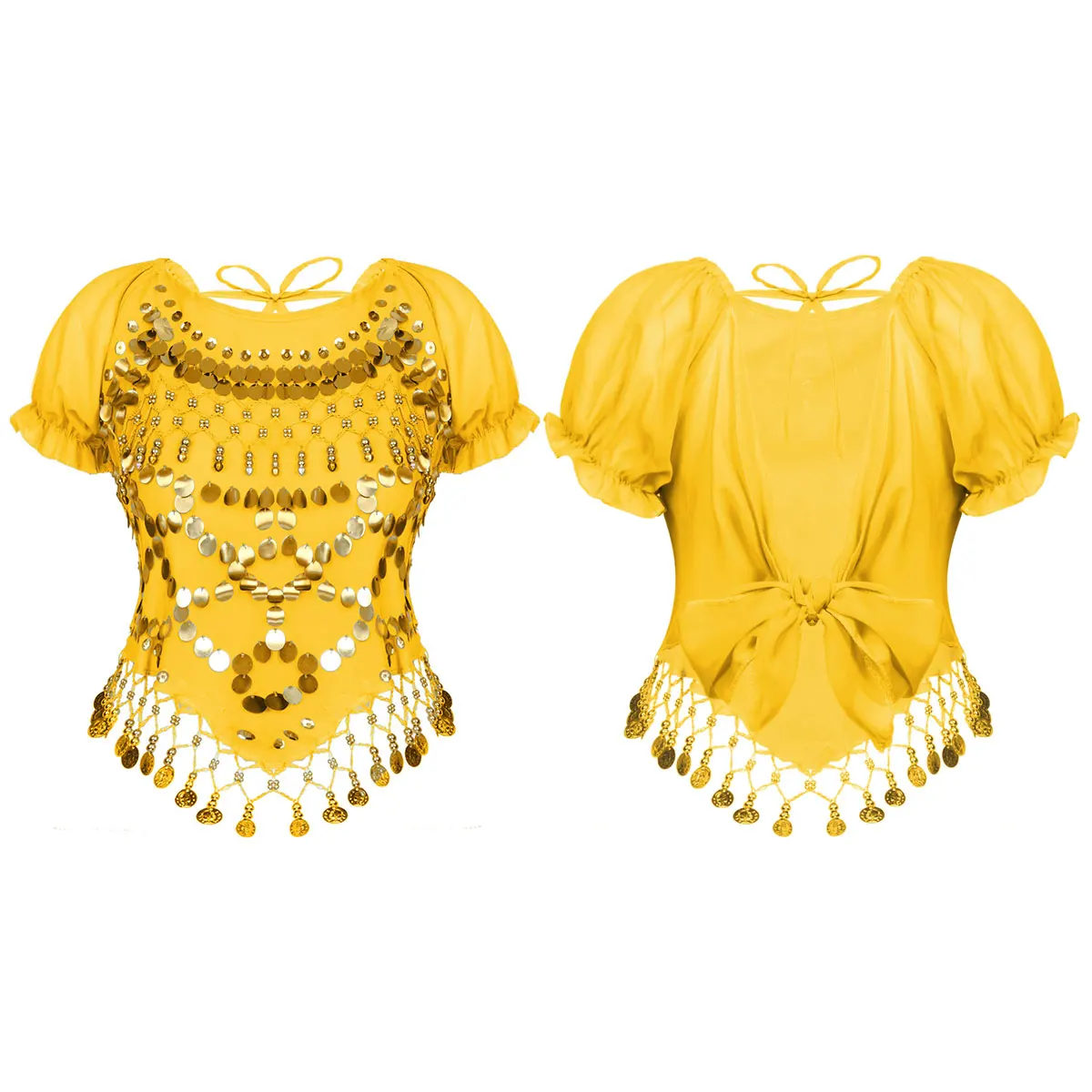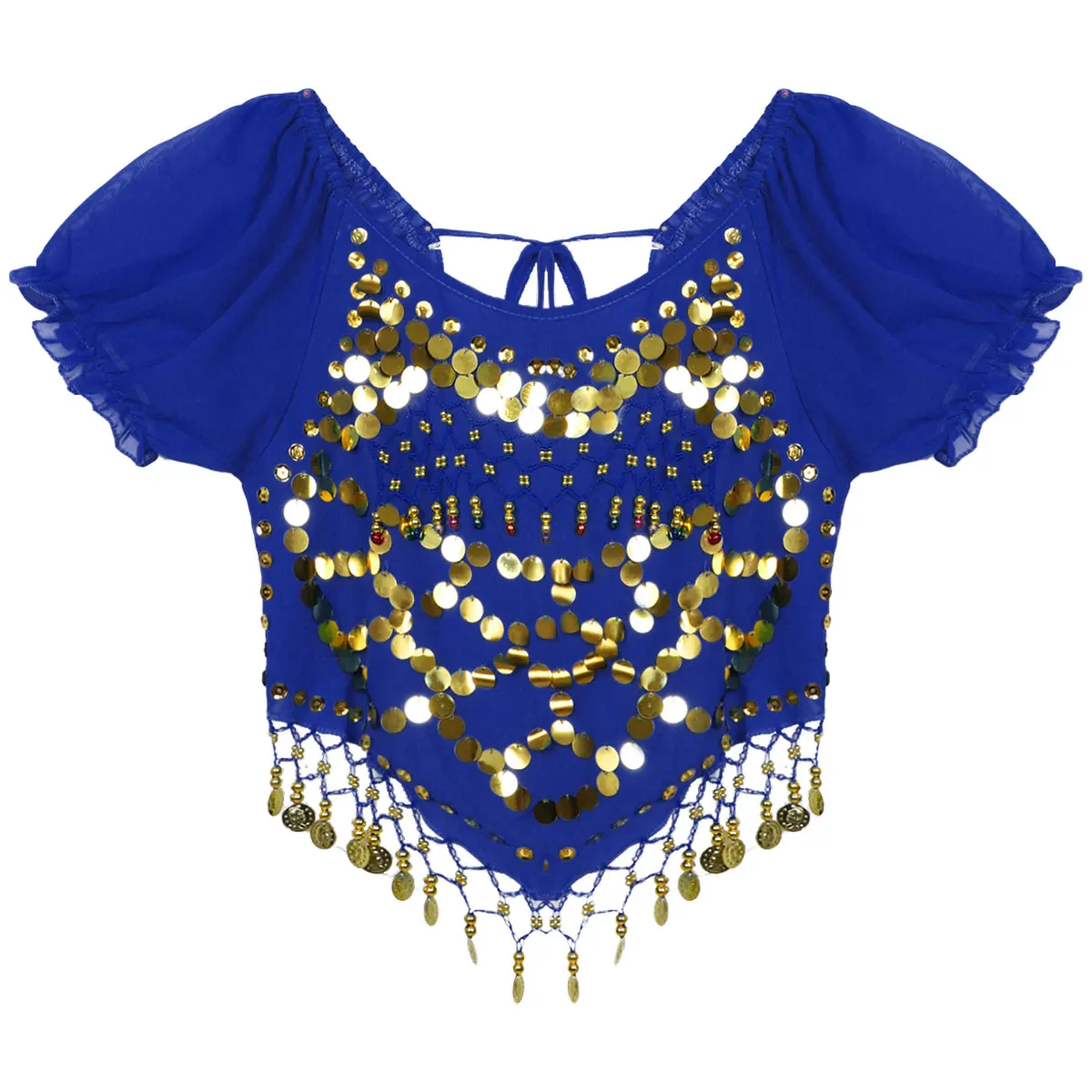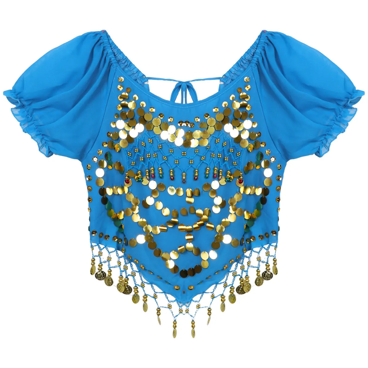 Женский короткий топ без рукавов с овальным вырезом, украшенный бусинами и блестками, с кисточками на спине, укороченный топ для танца живота, Карнавальный костюм для индийского танца на Хэллоуин