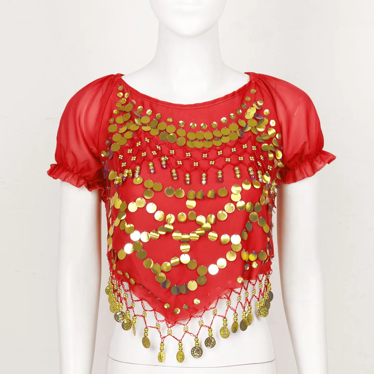 Женский модный костюм для танца живота на Хэллоуин, карнавал, индийский танцевальный костюм, укороченный топ, один размер подходит для большинства.