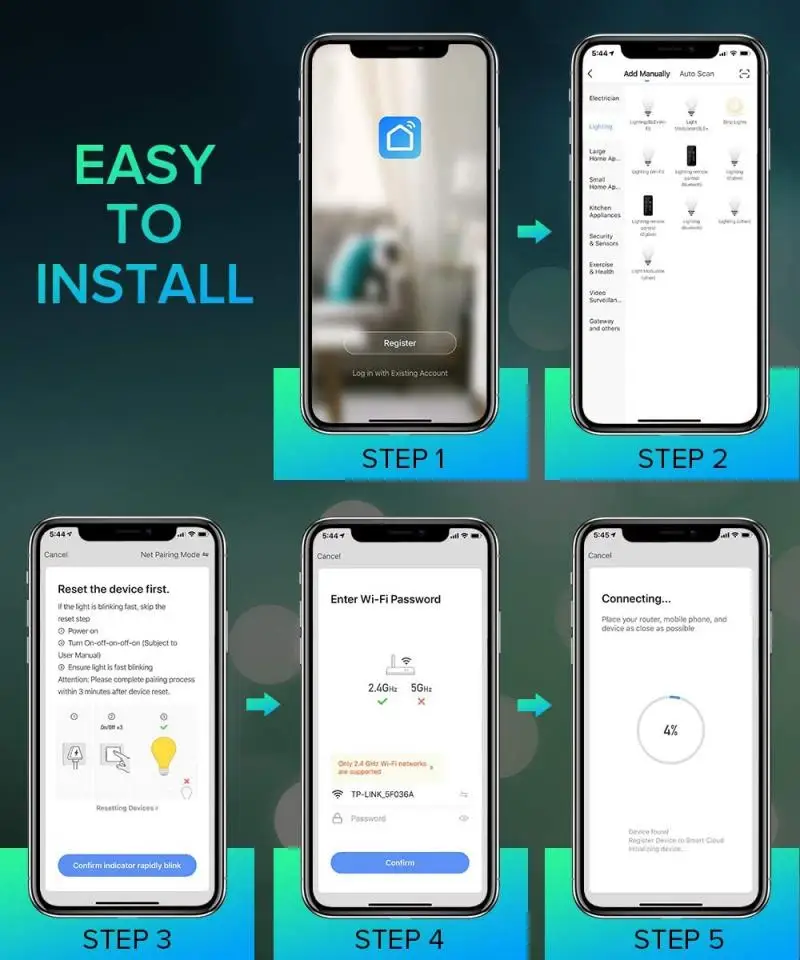 1. Не требуется хост, прямое подключение Wi-Fi, дистанционное управление через приложение, тысячи миль, Управляйте светильник дома.