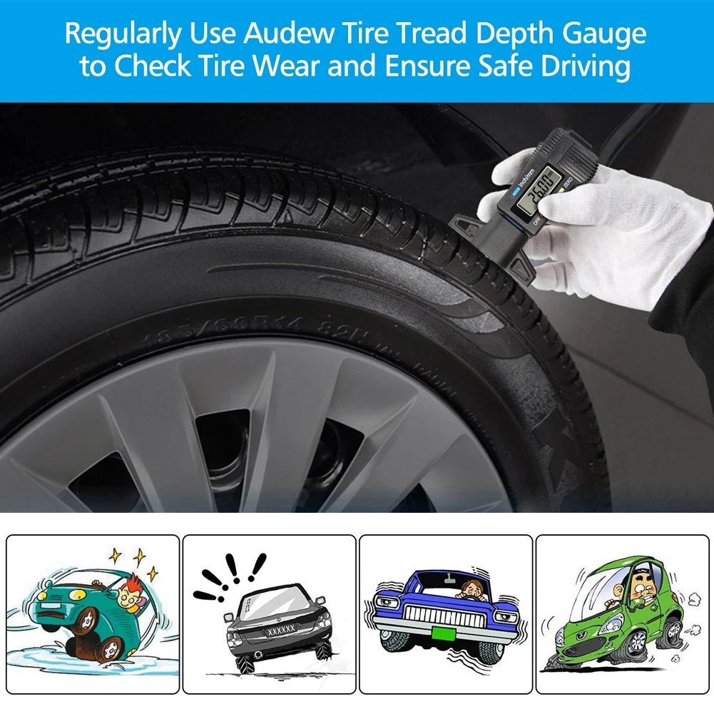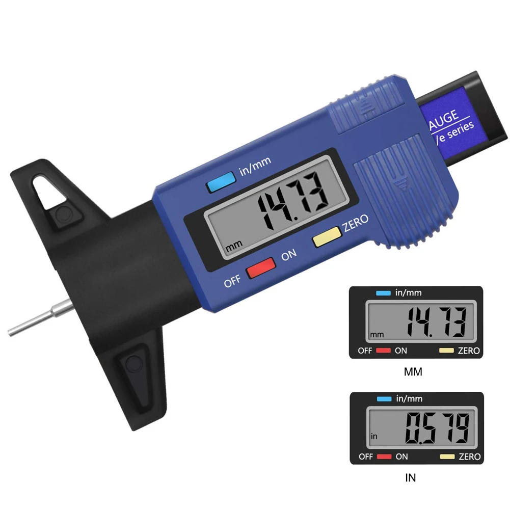 Высокоточный цифровой измеритель глубины протектора для шин Измерительный Инструмент Калибр Толщиномер цифровой измеритель глубины протектора для автомобильных шинС батареей