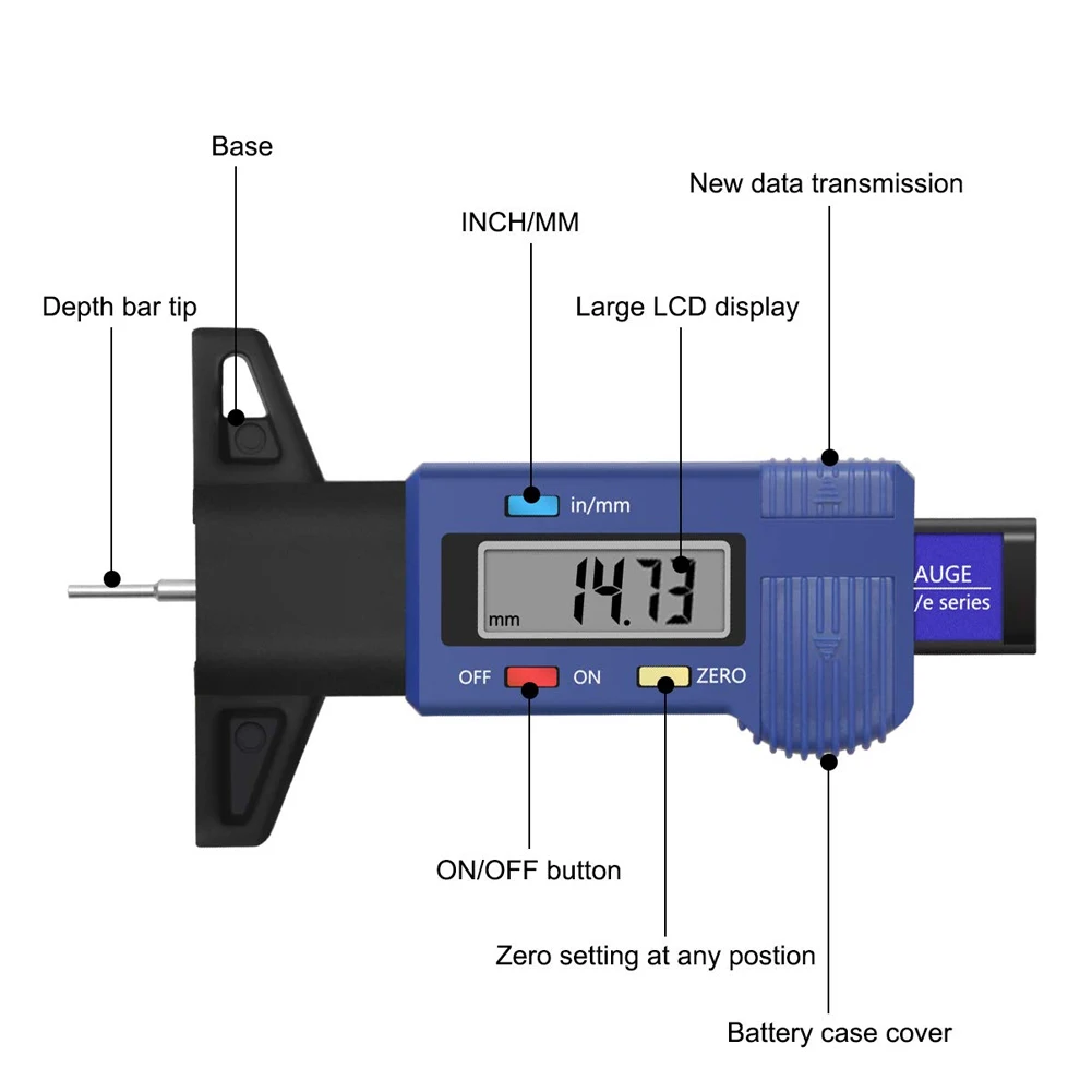 Цифровой измеритель глубины шин с ЖК-дисплеем