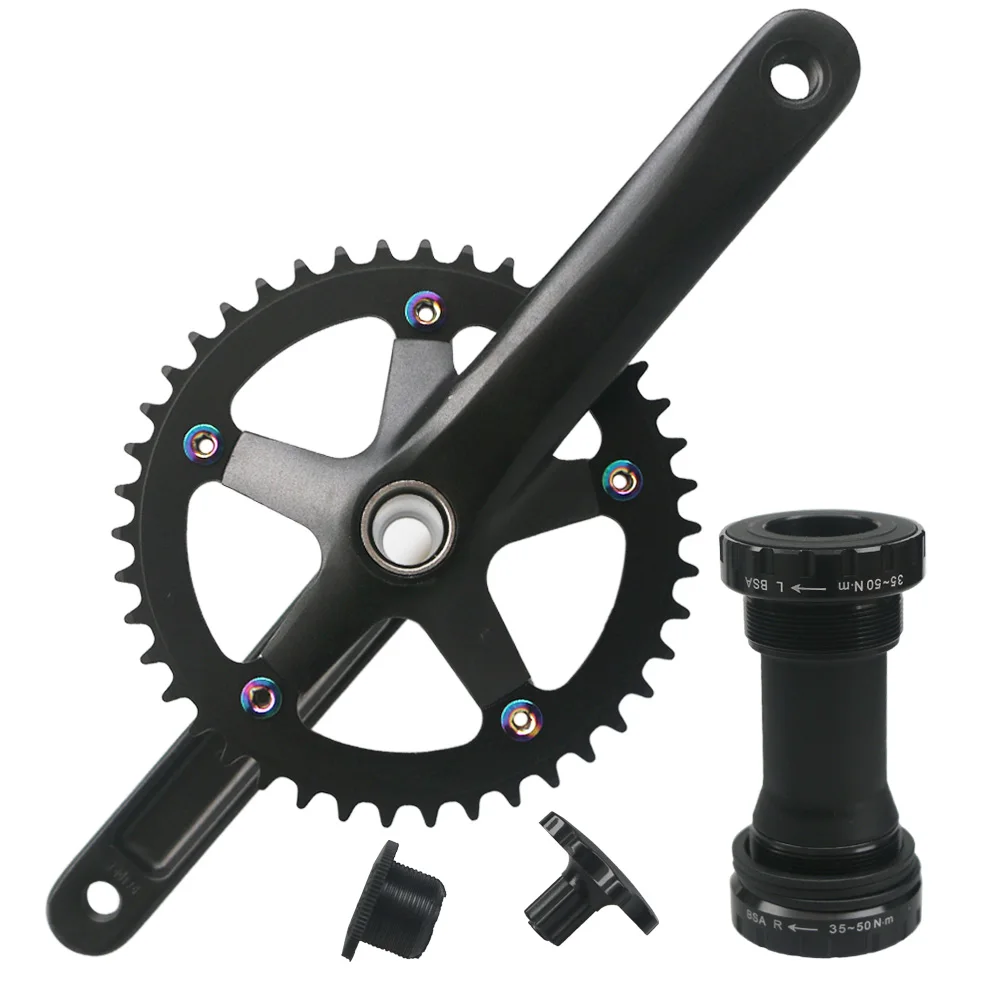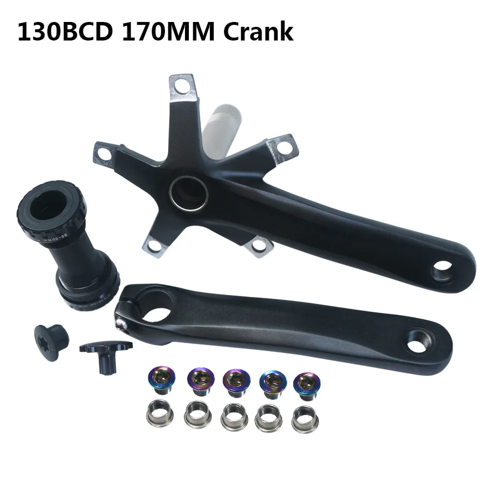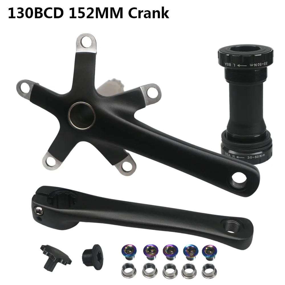 Цвет: черныйДлина рукоятки: 152 мм/165 мм/170 ммХарактеристики кривошипа: 130 BCDЗуб цепного колеса: 44T/47TПримечание:Перед покупкой, пожалуйста, подтвердите BCD130MM коленчатого набора. BCD-это круг, окруженный 5 отверстиями кривошипа. Диаметр этого круга-это расстояние между кривошипным отверстием и центром кривошипа 65 мм.Посылка включает в себя:1 х рукоятка1 x BB1 x инструмент для блокировки5 Винтов