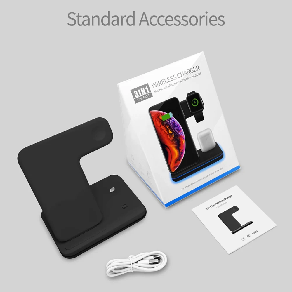1 * Беспроводная зарядная станция 1 * Руководство пользователя 1 * кабель для передачи данных