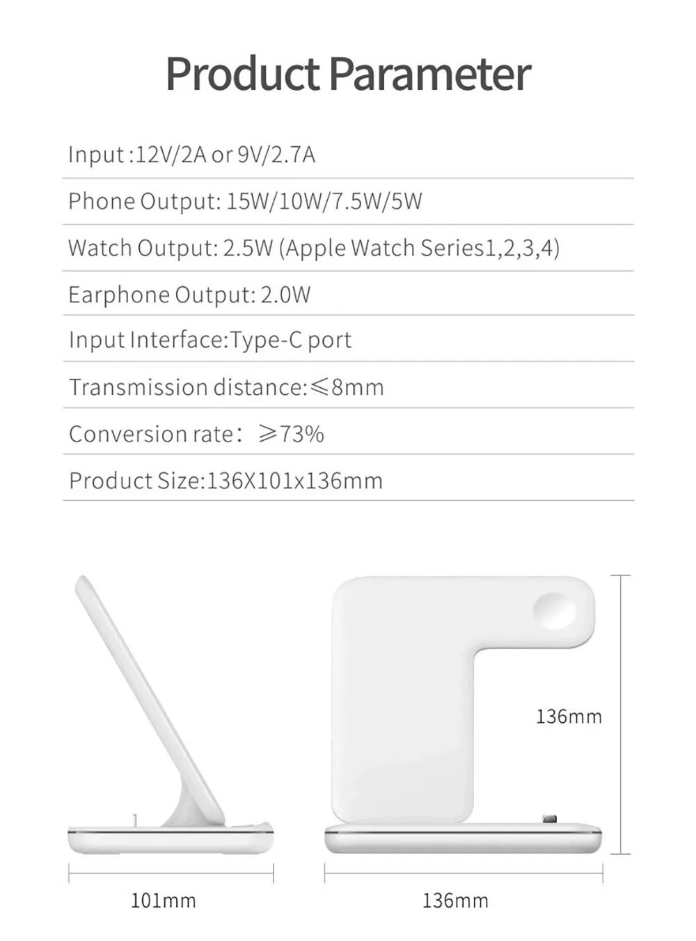 Чтобы обеспечить безопасную и эффективную зарядку, необходимо использовать адаптер 12 В/2 А или 9 В/2,7а и кабель для быстрой зарядки (адаптер не входит в посылка). В противном случае это повлияет на эффективность зарядки зарядного устройства и может не поддерживать одновременную зарядку трех устройств.