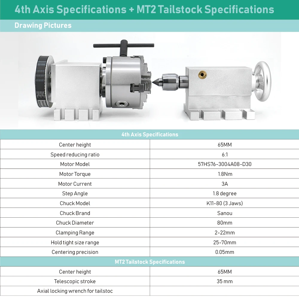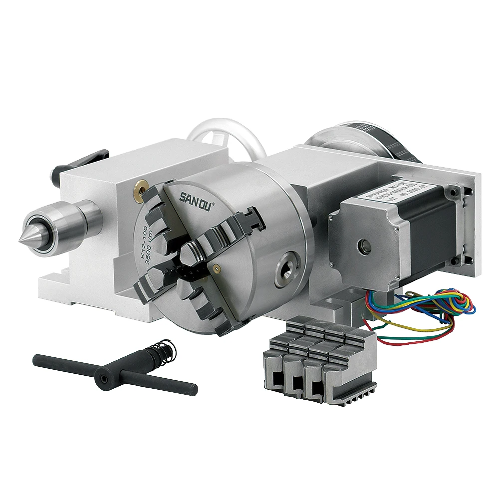 1 шаговый двигатель Nema 23 1.8Nm (6:1) K12-100mm 4-кулачковый патрон