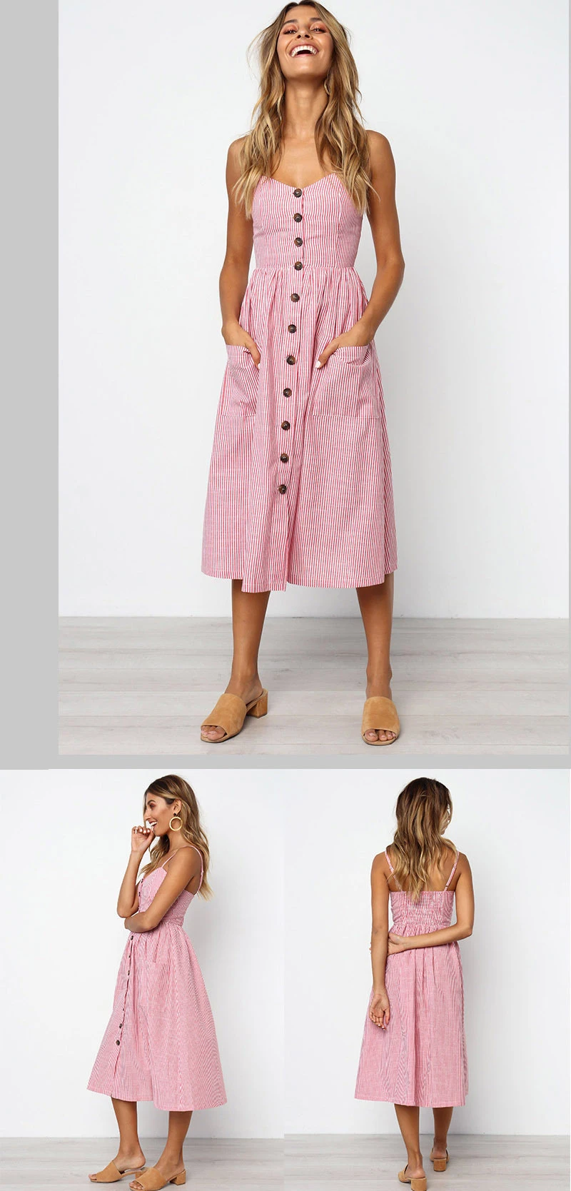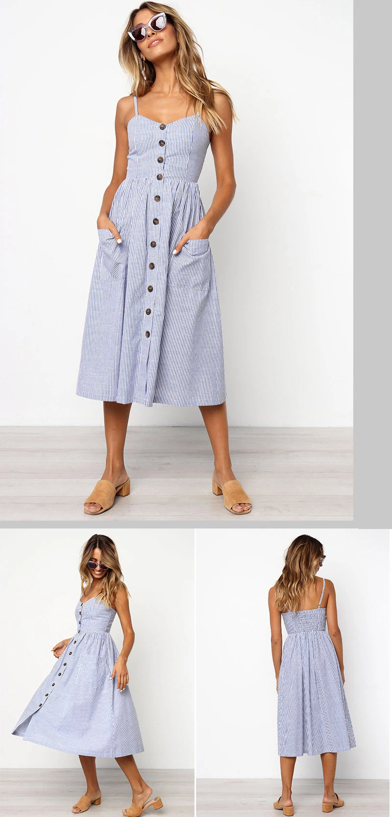 Женское платье с цветочным принтом, повседневное длинное платье в полоску, женское сексуальное платье с v-образным вырезом, без рукавов, на пуговицах, Пляжное платье миди размера плюс