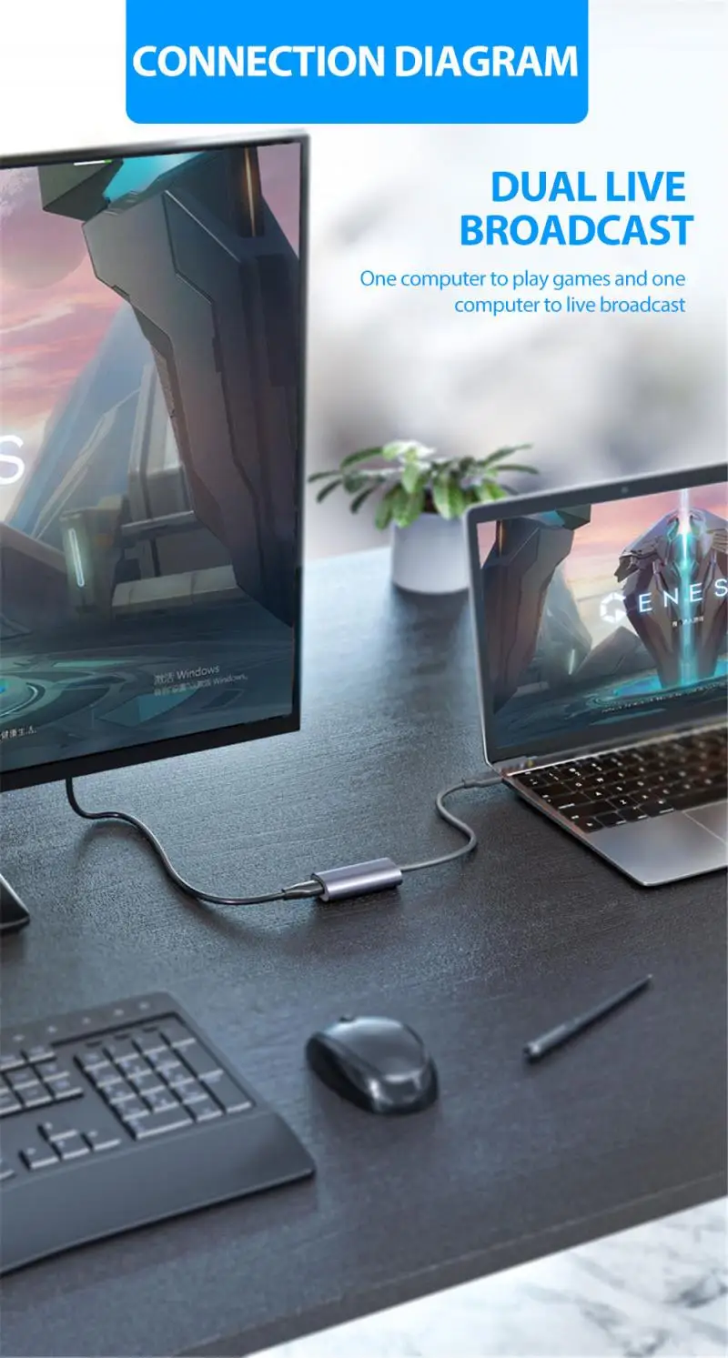 4. Обмен экраном для совещаний: карта захвата-это быстрый, привычный и экономичный способ поделиться контентом в конференц-залах и онлайн-встречах. Подключите к презентациям без программного обеспечения, просто подключите к ноутбуку или планшету через HDMI, чтобы начать обмен.