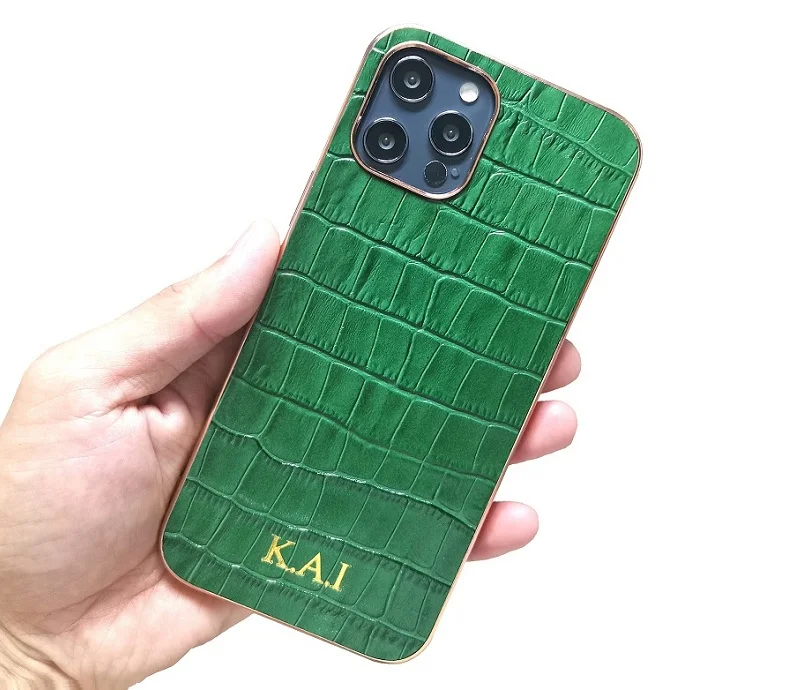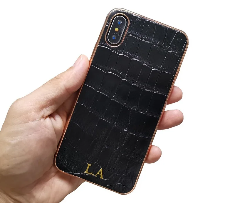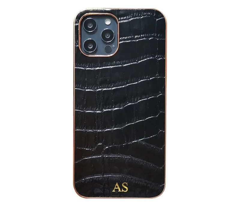 Пользовательское имя инициалы Письмо Логотип Натуральная кожа чехол для iPhone 13 12 Pro Max Mini 11 Pro XR X XS Max Мобильный телефон Аксессуары Прямая поставка Роскошный милый крокодил тонкий жесткий чехол