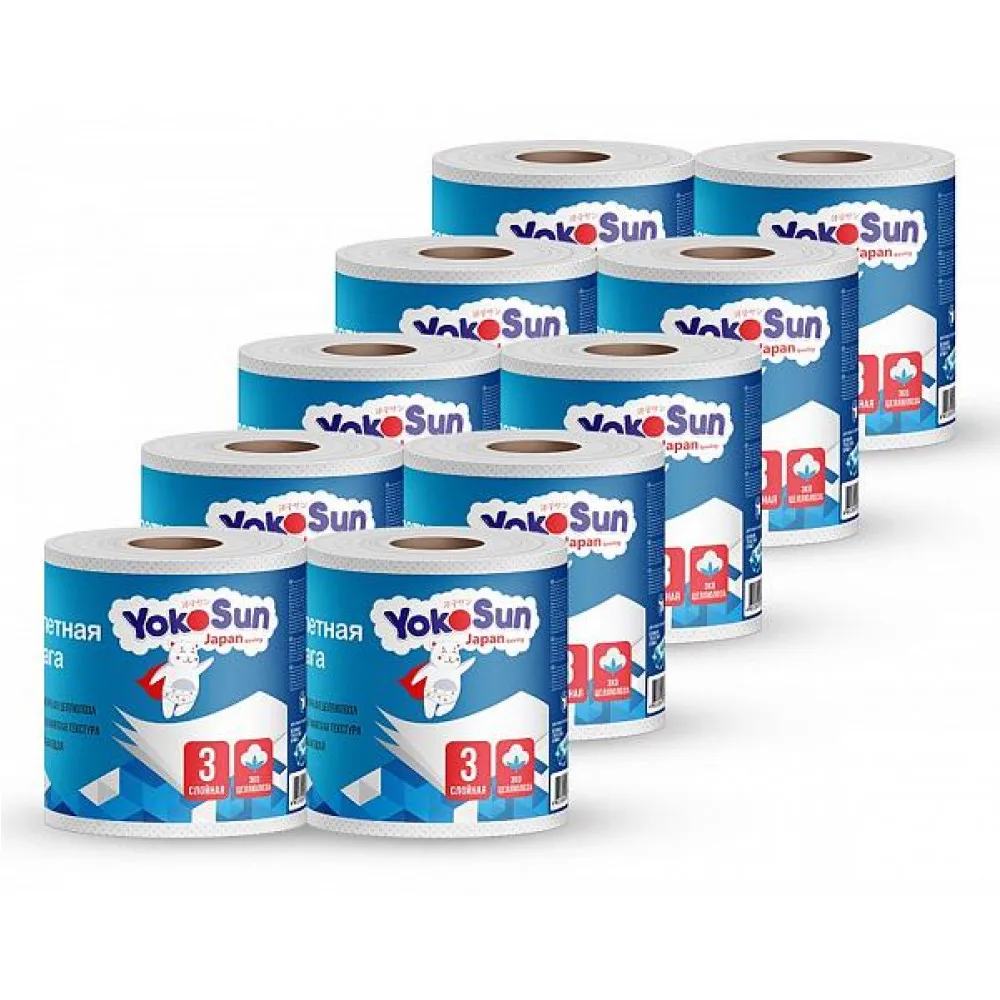 Туалетная бумага YokoSun – трехслойная тонкая, но прочная ультрамягкая туалетная бумага. Не рвется при намокании. Подходит для бережного ухода даже за самой нежной кожей. Благодаря своей текстуре бережно очищает кожу, не вызывая раздражения и покраснений, обеспечивает исключительную чистоту и комфорт. Имеет сертификат экологического соответствия качеству \"Эко\".