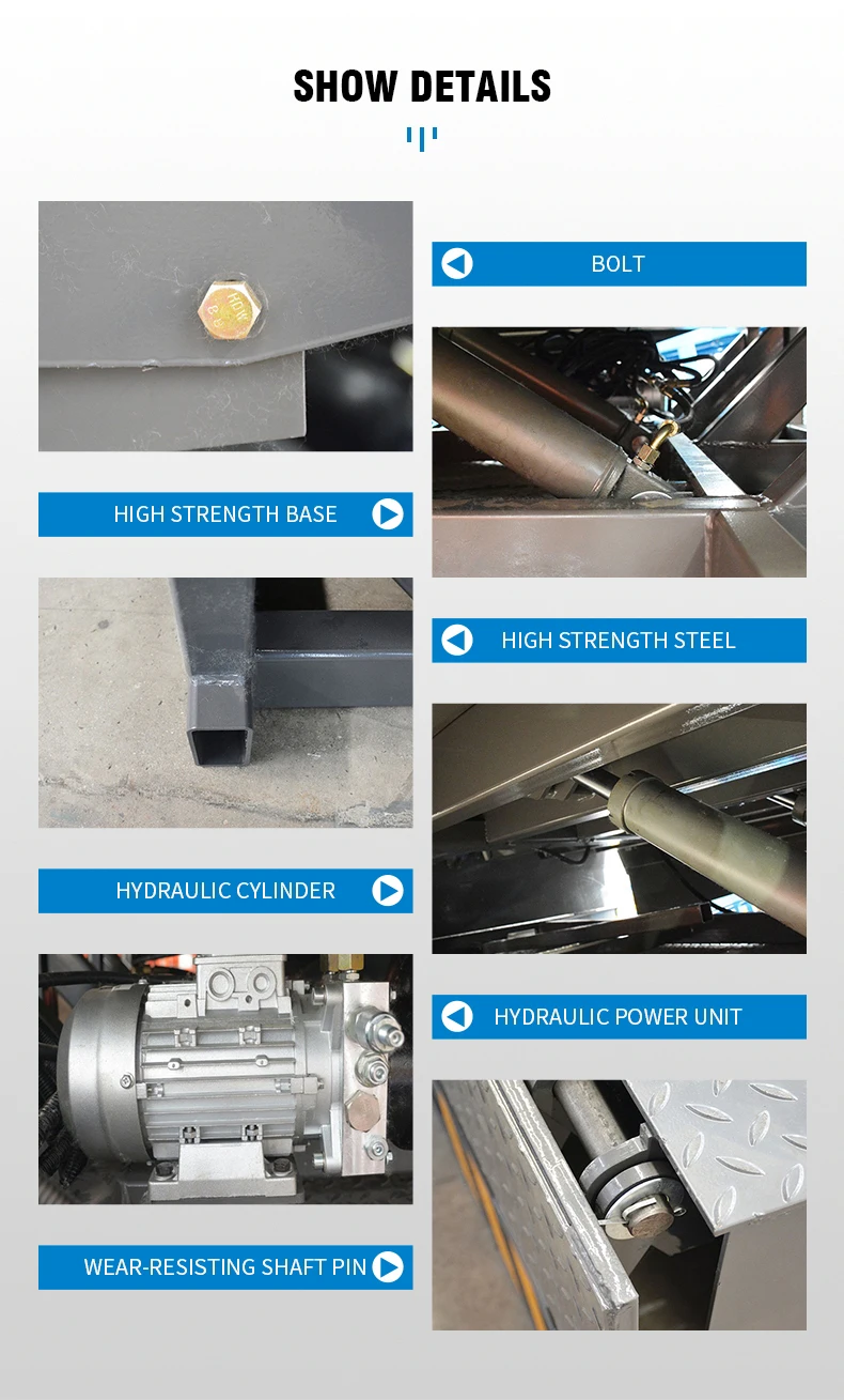 CE заводской Уравнительный стационарный погрузочный мост, гидравлическая рампа, уравнительный док Одобренный CE, 6 тонн, гидравлический стационарный выравниватель нагрузки для продажи CE ISO стационарный грузовик рампы погрузки гидравлический док выравниватель док пандусы производитель 6-8 тонн гидравлический док-выравниватель, мобильный Стационарный Гидравлический погрузочный подъемник с сертификатом Электрический гидравлический насос выравниватель для погрузки и разгрузки заводских товаров 2020 высокопрочный складской автоматический логистический гидравлический док-выравниватель с большой емкостью Информация о компании Компания Shandong Qiyun Group Co., Ltd. была основана в 2014 году. Компания расположена в Цзян, Шаньдун, который известен как «Родной город гидравлической подъемной платформы Китая». Первоначально сформированный семью компаниями специализирующийся на производстве и продажи лифтовой продукции, он в настоящее время превратился в профессиональную групповую компанию, объединяющую НИОКР, производство, продажи и экспорт. У нас не только есть все виды современных обычных гидравлических подъемников, но и продукция на заказ в соответствии с потребностями клиента. Компания Shandong Qiyun Group Co., Ltd. имеет различные системы сертификации, такие как ISO, CE, SGS и т. д. она может осуществлять массовое производство OEM и ODM. В настоящее время компания активно развивает экспорт и привлекает агентов и дистрибьюторов по всему миру. Теперь наша продукция продается по всему миру и широко используется в различных отраслях и местах, таких как техническое обслуживание растений, техническое обслуживание оборудования, складское дело и логистика, аэропорты и порты, выставочные залы вилл, воздушных работ и т. Д., и признаны нашими клиентами. Описание продукта Док выравниватель-профессиональное вспомогательное оборудование для быстрой загрузки и выгрузки товара. Его функция регулировки высоты делает мост между грузовиком и грузовой платформой склада. Вилочные погрузчики и другие транспортные средства могут ездить непосредственно в грузовики через него для погрузки и разгрузки груза. Действовать может только один человек. Диапазон нагрузки нашего уравнивателя обычно составляет 6-12 тонн. Размер платформы составляет 2000*2500 мм или 2000*2000 мм, также может быть изготовлен на заказ в соответствии с вашими требованиями. Высота хода оборудования составляет 200 мм вниз и 300 мм вверх. Максимальная высота может достигать 600 мм. Таблица параметров Размер платформы модели (мм) пластина для губы Размер ямы питания вверх вниз (мм) DCQG6-0.6 2000*2500 400 300 200 0,75квт 2080*2540*600 DCQG8-0.6 2000*2500 400 300 200 0,75квт 2080*2540*600 DCQG10-0.6 2000*2500 400 300 200 0,75квт 2080*2540*600 Безопасное устройство: надежное 1. Защита от перегрузки: гидравлический блок с устройством защиты от перегрузки. При перегрузке гидравлическая станция автоматически снижает давление и прекращает работу. 2. Аварийная остановка: лифт можно немедленно остановить в случае любой чрезвычайной ситуации. 3. Аварийное опускание: платформу можно опустить вручную в случае сбоя питания. 4. Взрывозащищенный клапан: гидравлическая система оснащена взрывозащищенными клапанами, что может предотвратить внезапное падение платформы при поломке масляной трубы. 5. Датчик безопасности: когда платформа упадет, если она прикоснется к чему-либо, она будет остановле