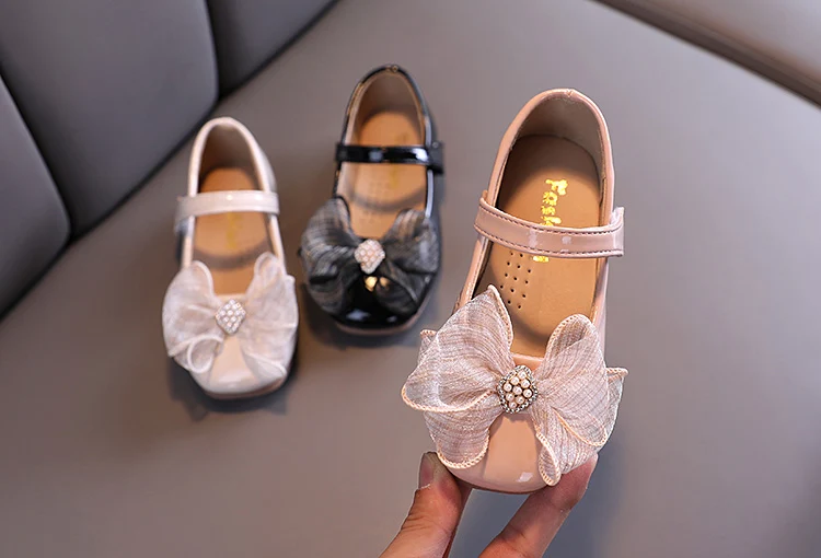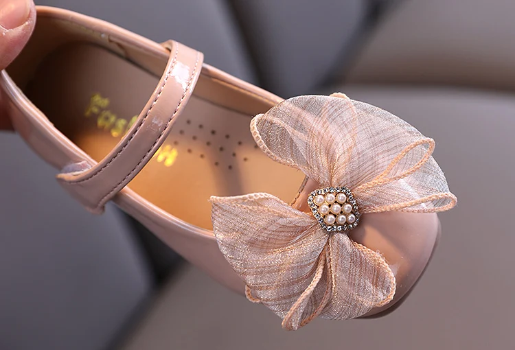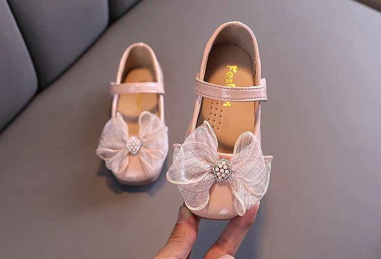 items name: Girls Leather Shoes Casual Sneakers Spring/autumn Kids Baby Princess Shoes with Bow Children Pearl Performance Shoes
