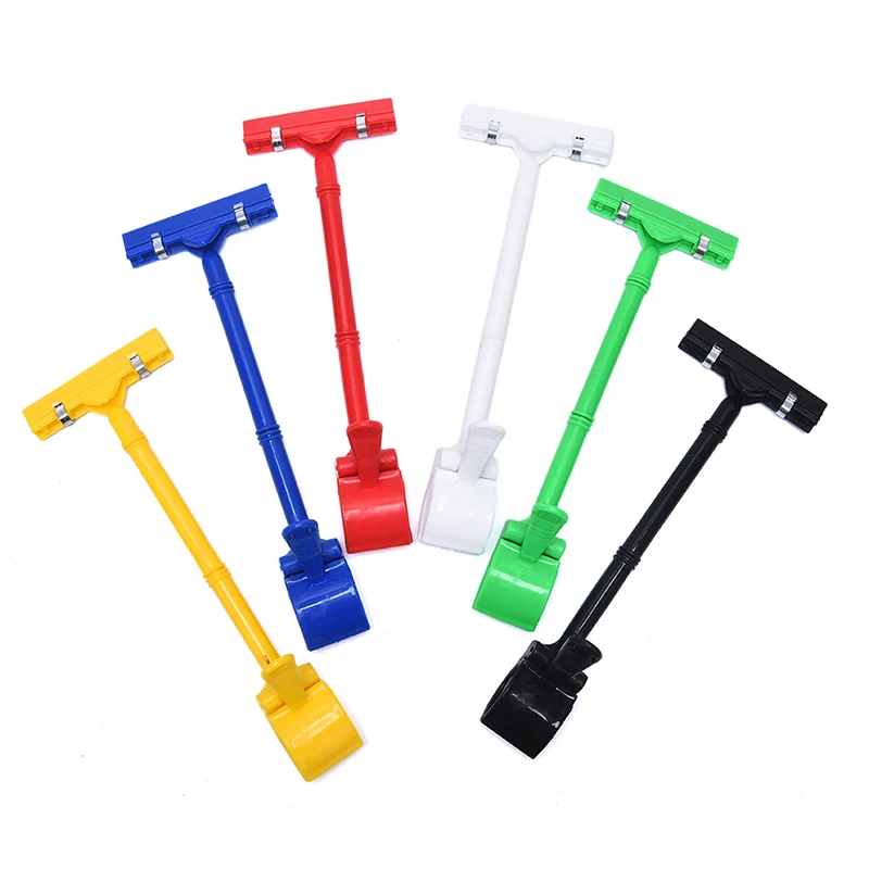 Структура продукта: верхний плоский рот зажим-9 см в длину, размер отверстия-0,5 см (тонкий KT плата или бумаги с покрытием, рекламные бумажные и т. д.), И нижней ползунковый зажим для открытия Размер 3,8 см. Кроме того, внутренний диаметр нижнего зажима имеет экологически чистую резиновую прокладку, которая больше подходит для зажима цилиндрических предметов, пластин, квадратных трубок, перегородок, круглый Тюбик баночка и другие предметы которого диаметер или толщины не превышает 3,8 см.