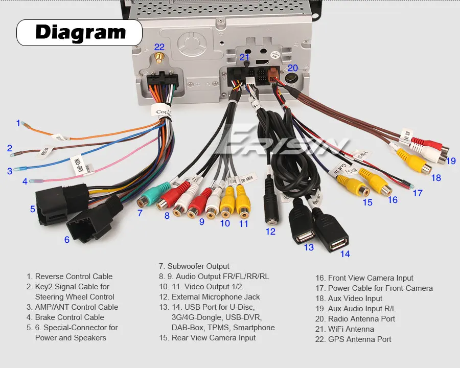 -Функция: может быть подключен к U-диску, ключу 3G/4G, ключу CarPlay, устройству TPMS, DVR-камере, DAB + Box, смартфону и т. д.