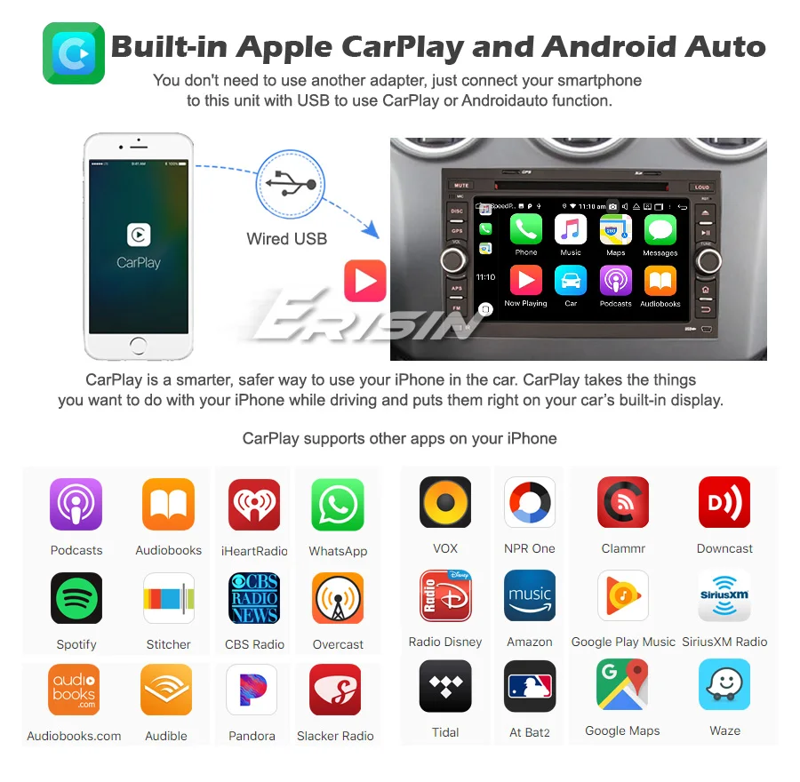 -Встроенный автоматический модуль Apple CarPlay и Android. Вам не нужно использовать другой адаптер, просто подключите ваш