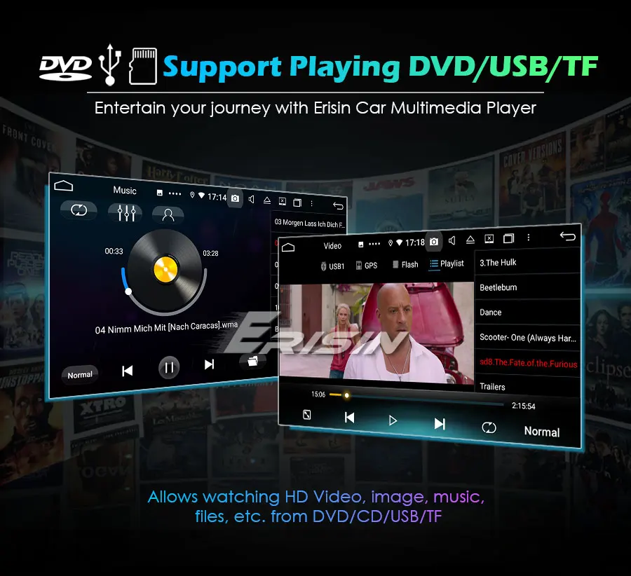 -Поддержка мультимедийного Проигрывателя Android, может воспроизводить музыку/видео/фото с локального диска или USB/TF