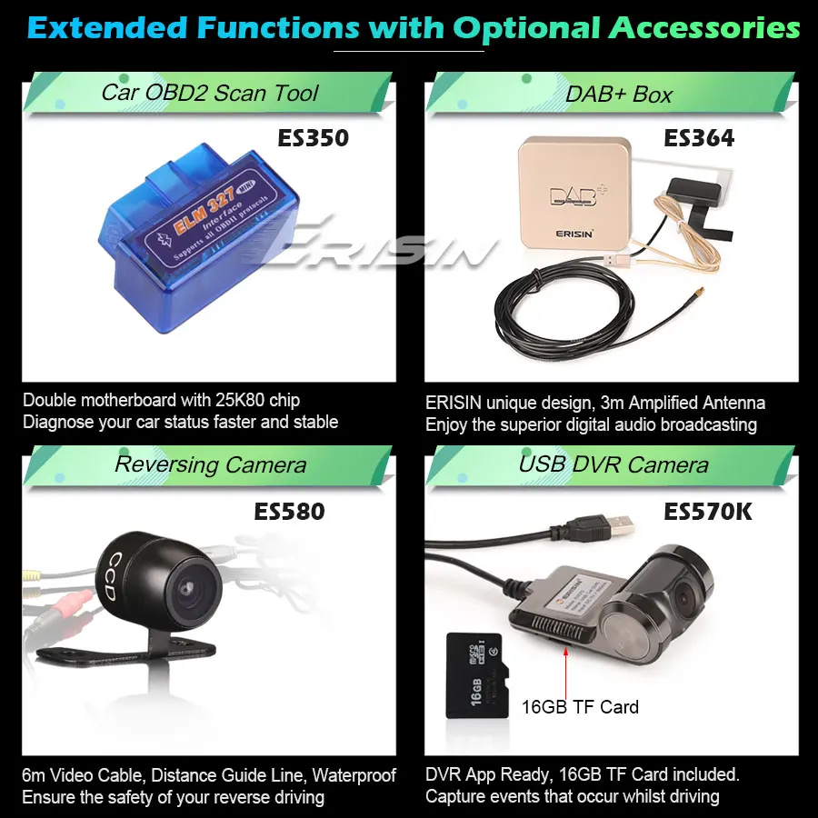 -Поддержка расширенных функций DAB +, DVB-T/T2, TPMS, OBD2, DVR, Camera, AVIN, 3G, 4G и т. д.