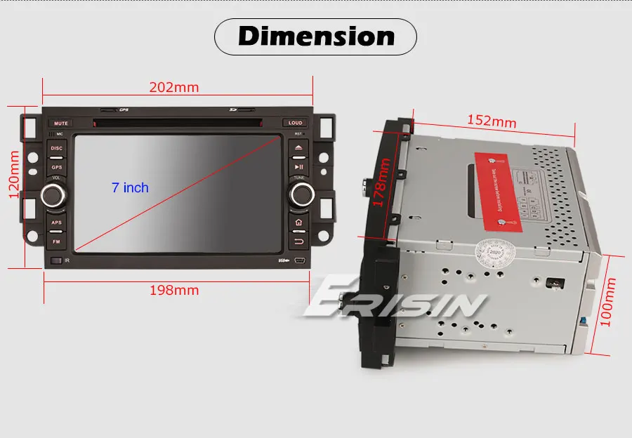 Это устройство имеет размер передней панели202 мм (ширина верха) * 120 мм (высота) * 198 мм (ширина дна). Чтобы убедиться, что товар подходит для вашего автомобиля, пожалуйста, проверьте форму и размеры вашего оригинального автомобильного медиаплеера, который совпадает с описанием в нашем списке перед подачей заявки.