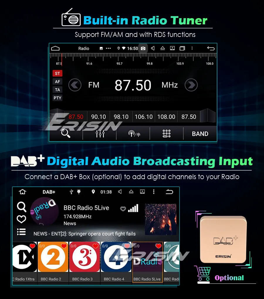 -Встроенное приложение DAB Player: Да, просто подключите DAB + Box, чтобы использовать эту функцию