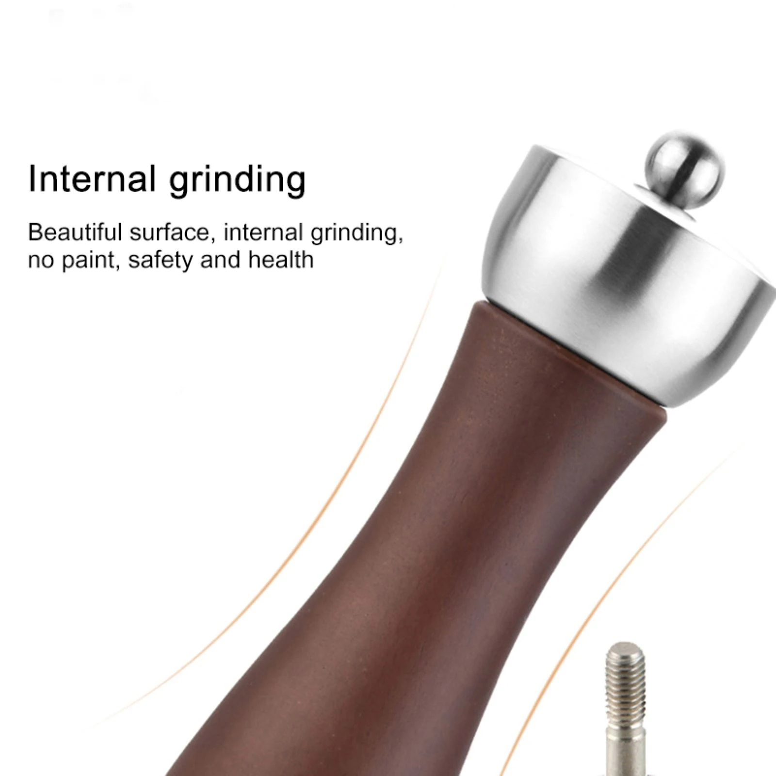 Мельница для соли и перца многоразовая буковая древесина из нержавеющей стали ручная мельница для перца, регулируемая грубость для барбекю, ужина, кухни, пикника, путешествия (8 дюймов)