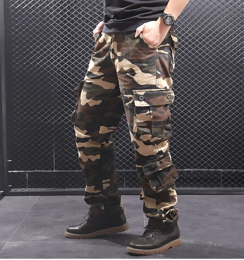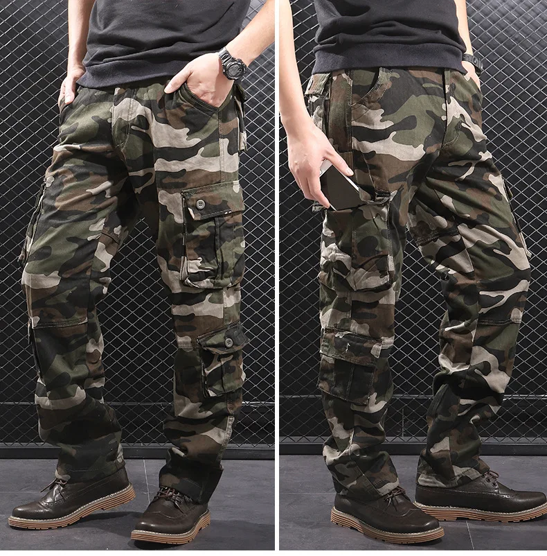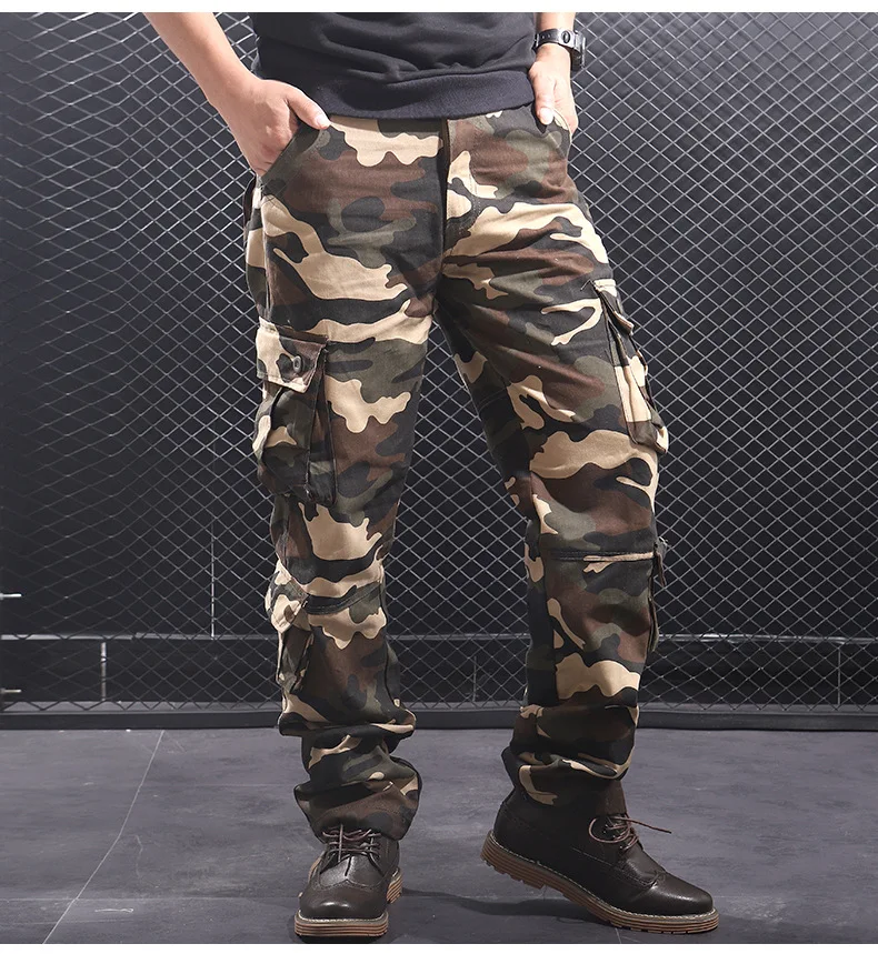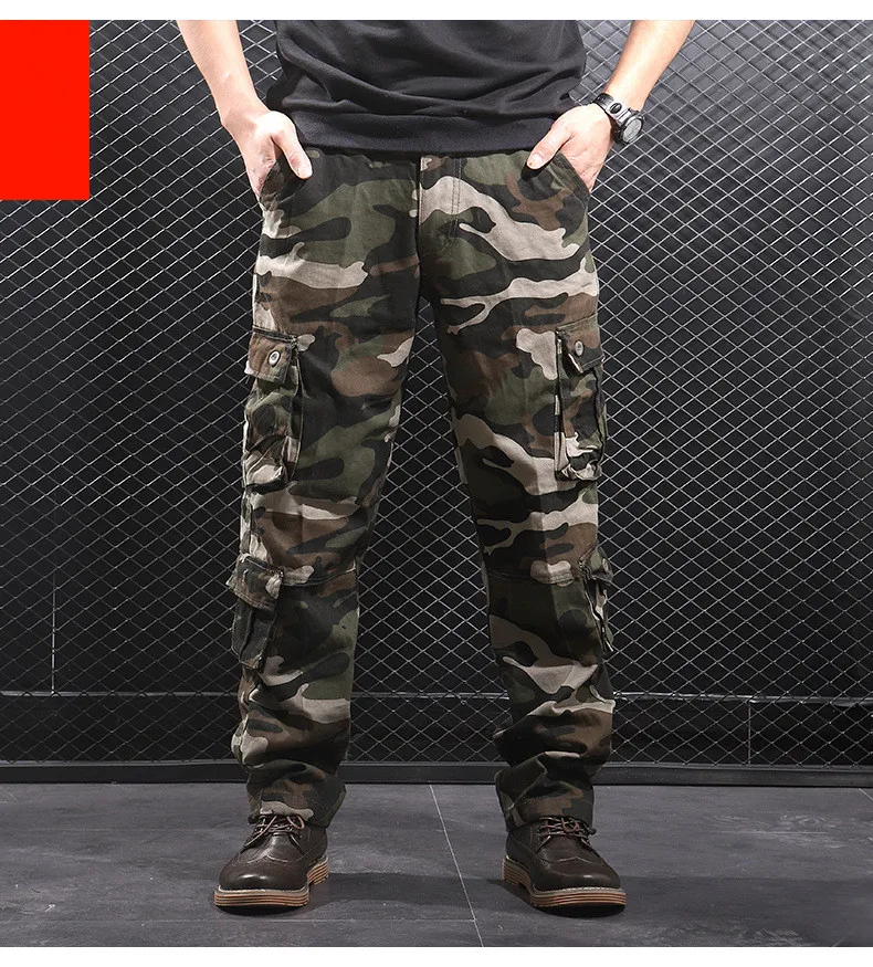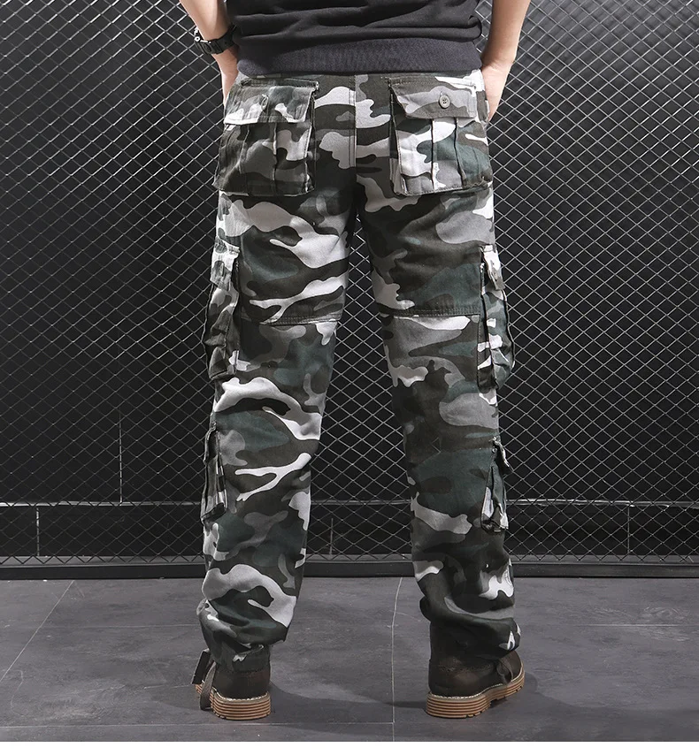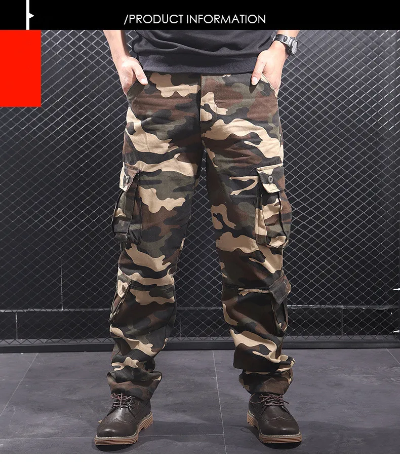 Мужские камуфляжные мешковатые брюки-карго, мужские армейские военные тактические Длинные повседневные длинные брюки, свободные прямые брюки большого размера 44