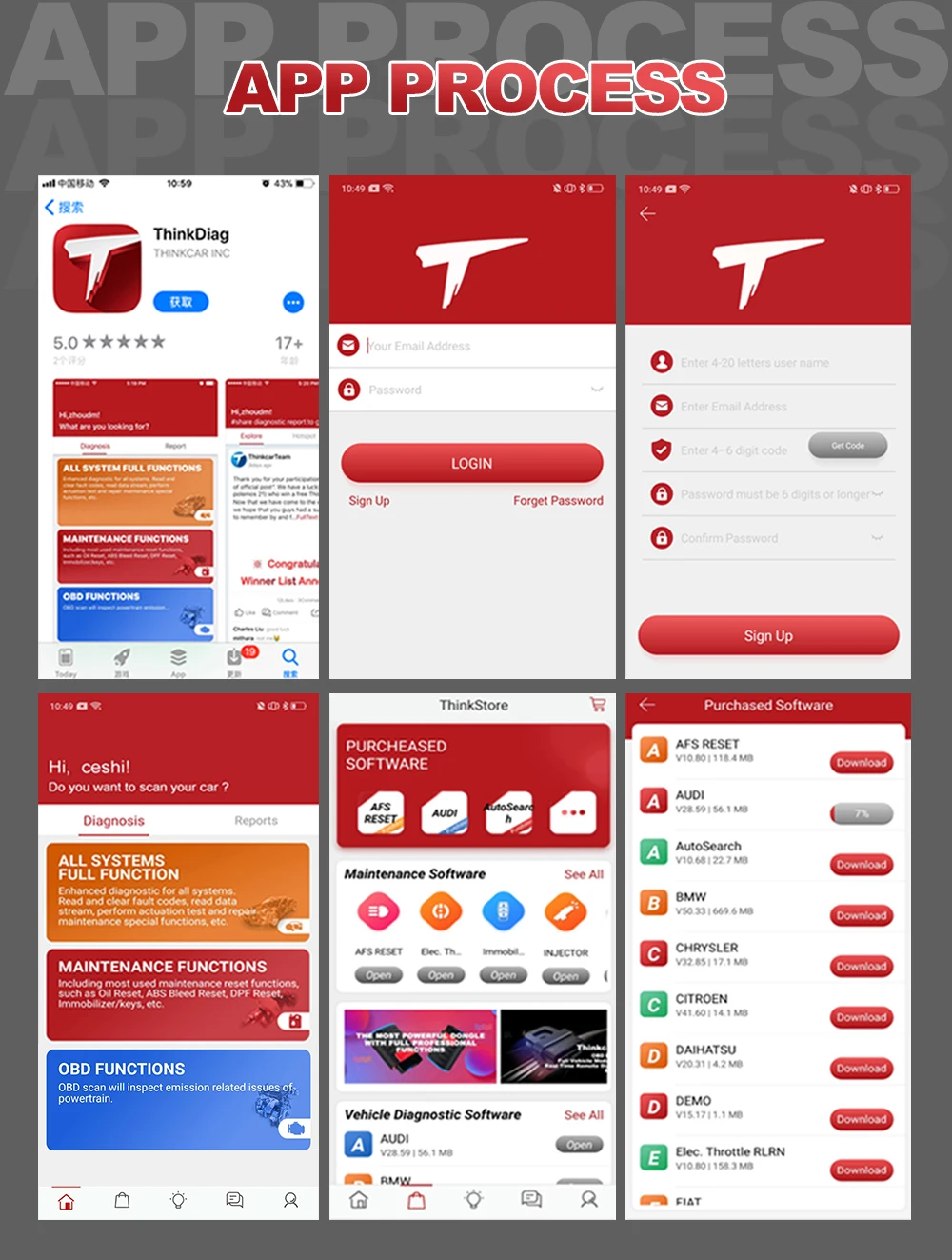 1) загрузите и установите APK «Thinkdiag» в Google Play или вашем смартфоне и Зарегистрируйтесь на новую учетную запись и Войдите в систему.