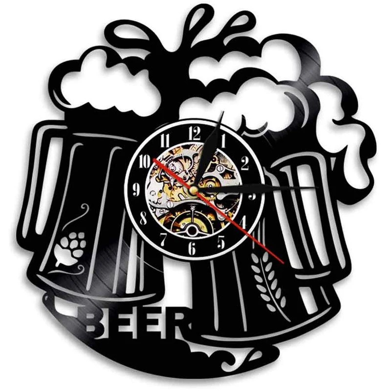 Пивные виниловые настенные часы современный дизайн декоративный бар 3D часы бутылка пива винтажные виниловые настенные часы домашний декор