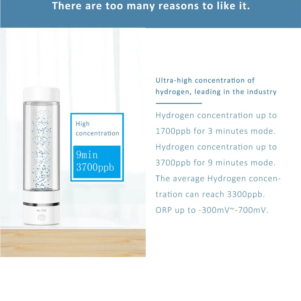 H2 Life Generator-это самый маленький портативный генератор водорода в мире, до 5500ppb Быстрый самый маленький SPE PEM технология водорода богатый генератор воды.