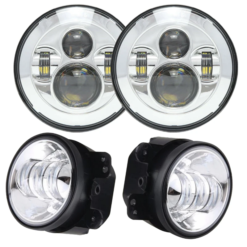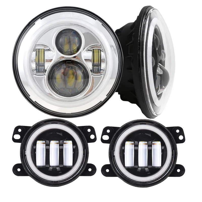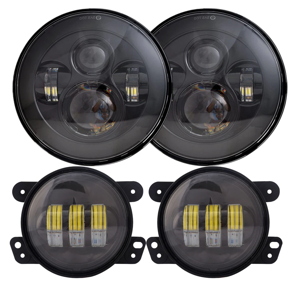 2 шт. 7 дюймов светодиодный фар Hi/короче спереди и длиннее сзади) дальнего света DRL Янтарный указатель поворота + 4 дюйма переднего бампера противотуманные фары дальнего света для 2007-2017 Jeep Wrangler JK по низкой цене