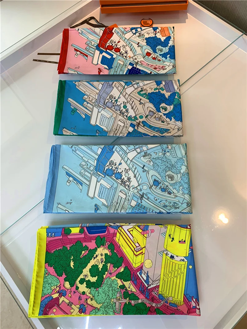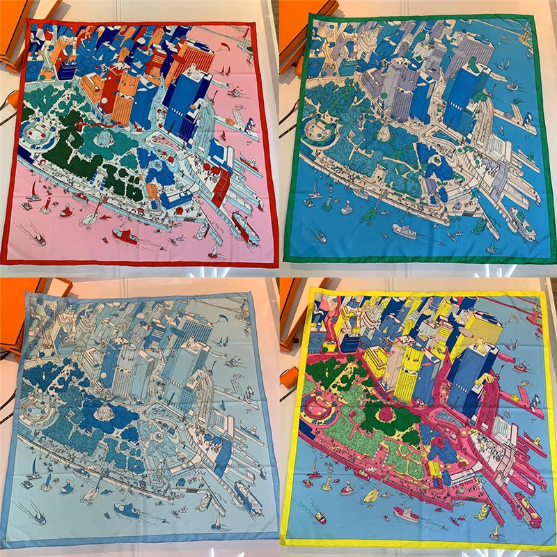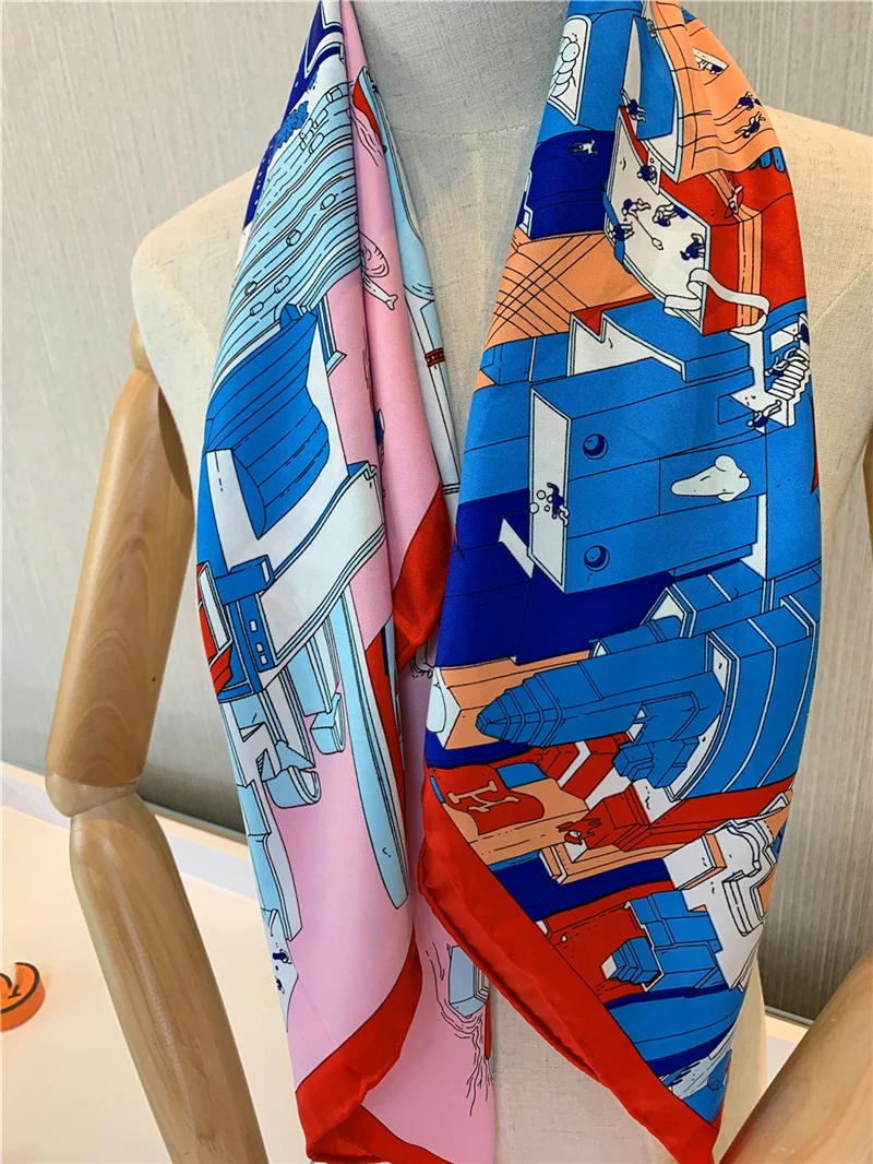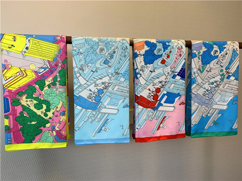 90 см "Beach City" Шелковый шарф из саржи, Женская квадратная шаль, брендовый хиджаб, шарф, бандана, Леопардовый, ручная работа, свернутый платок, шарфы