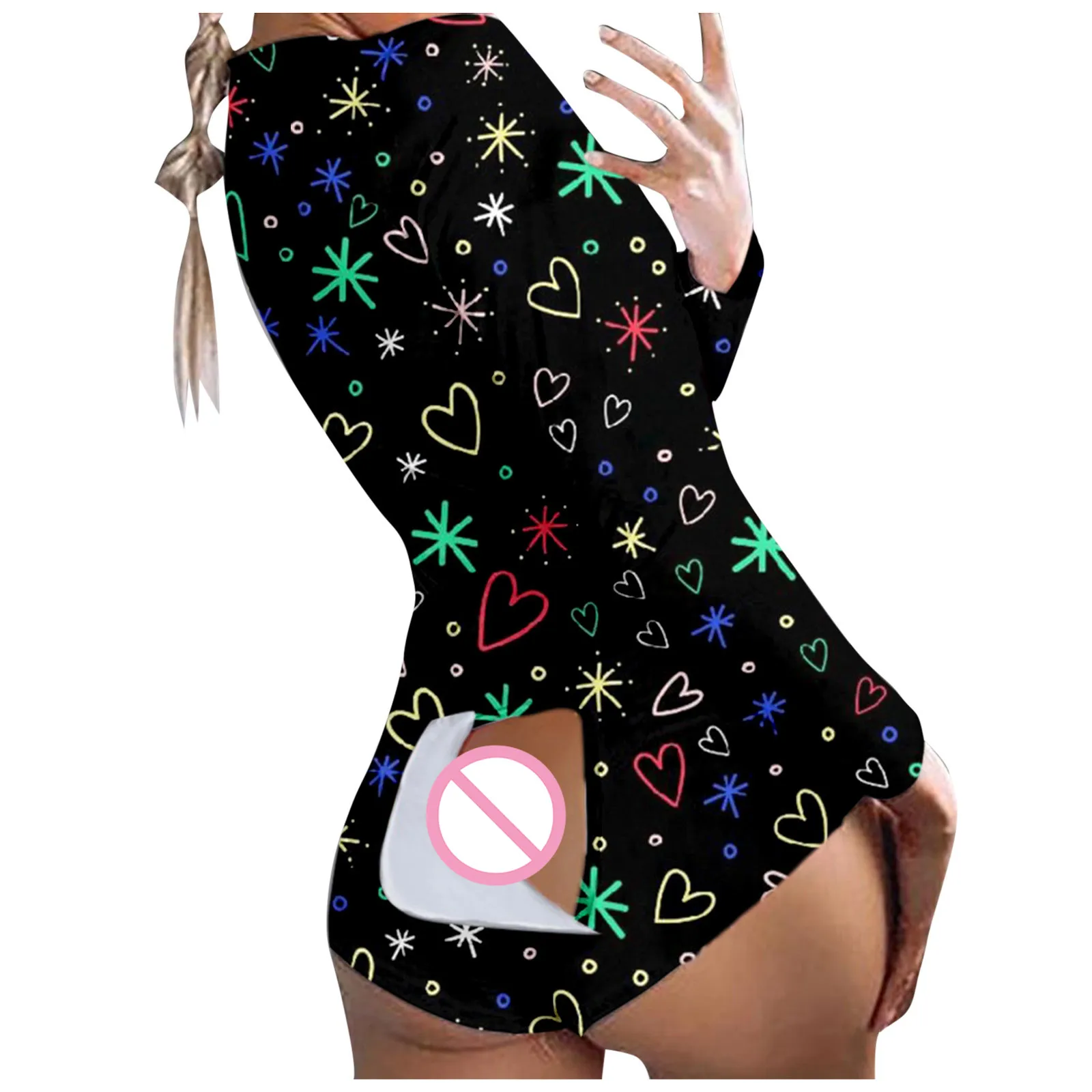 2021 сексуальные женские пижамы, комбинезоны, изящная Пижама с v-образным вырезом и принтом, комбинезон для взрослых функциональная Пижама с клапаном на пуговицах, высокое качество