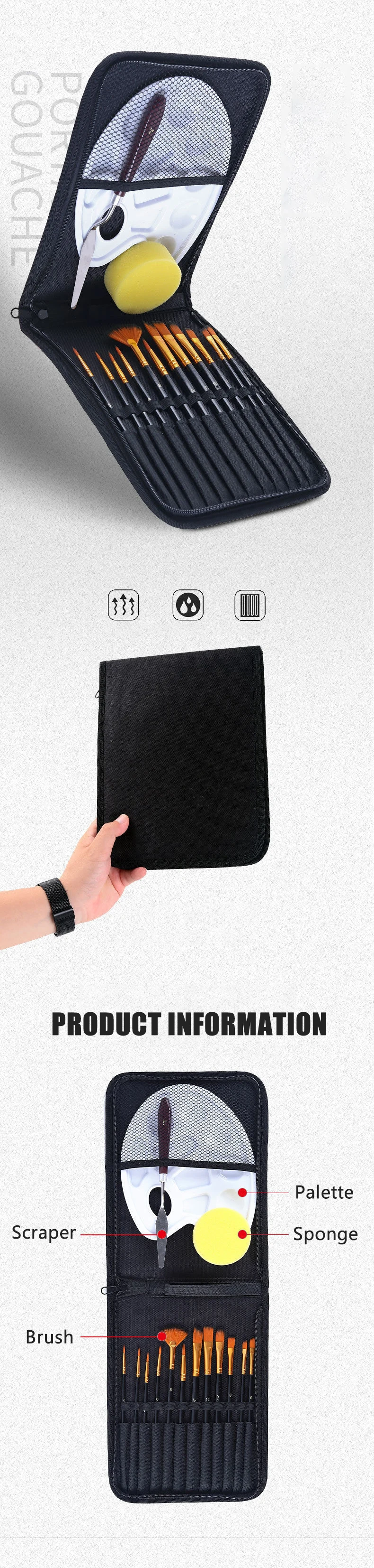 ☆ 12 различных размеров кистей для рисования + губка + палитра + Портативный чехол для карандашей! Супер практичный набор рисунков, можно решить все проблемы! ☆ Подходит для всех людей! Начинающий или профессиональный художник, может удовлетворить все ваши потребности в живописи. Больше не нужно беспокоиться о том, чтобы поставить ручку в расстройство! ☆ Водонепроницаемый чехол-Карандаш! Не беспокойтесь о неудобной переноске влажных кистей, просто возьмите их в сумку!