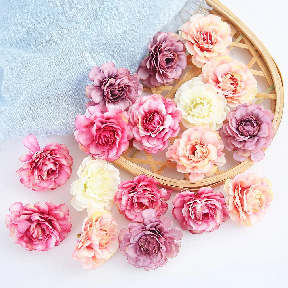 Шелковые головки цветов, Бордовые цветы, оптовая продажа, искусственные цветы для гортензии, 5 см, Роза для свадебной вечеринки, Декор, ремесло, цветок