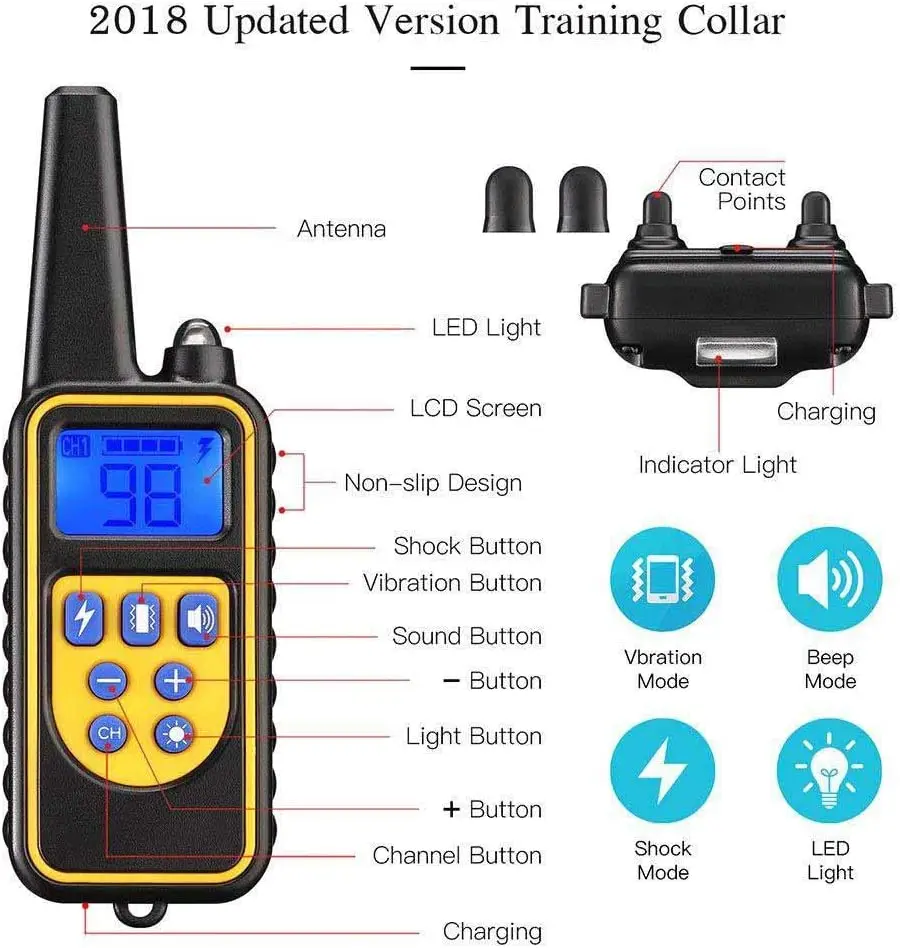 IP7 водонепроницаемый пульт дистанционного управления для собак, Приемник оснащен силиконовый Кондуктивный столбик более безопасным, дистанция дистанционного управления 800 метров, функциональные клавиши дистанционного управления отдельно нужны, какая функция непосредственно кнопка, простота в эксплуатации 1. Приемник IP7 градусов Водонепроницаемый, Высококачественный ТПУ материал, можно плавать, принимать ванну, нырять 2. Синий ЖК-экран 3. Расстояние дистанционного управления около 800 метров 4. С литиевой батареей, перезаряжаемой 5. ТПУ материал приемника и водонепроницаемый 6. Для собаки (один пульт дистанционного управления максимум 3 Собаки) 7. Сертификация продукта: CE / FCC / ROHS 8. OEM 9. 10-99 Настройка файлов, настройка статического и вибрационного размера приемника, вы можете в соответствии с личностью и размером вашего питомца для регулировки 11. Ошейник для собак с цифровой автоматической функцией памяти кода, не будет зависеть от подобных товаров, создаваемых соседями 12. В том числе USB micro зарядный кабель для удобной зарядки с помощью зарядного устройства для ноутбука или зарядного устройства 13. Нет адаптера для экономии затрат и повторного использования. Если вам нужен адаптер, пожалуйста, оставьте сообщение, тогда мы поставим адаптер в посылка.