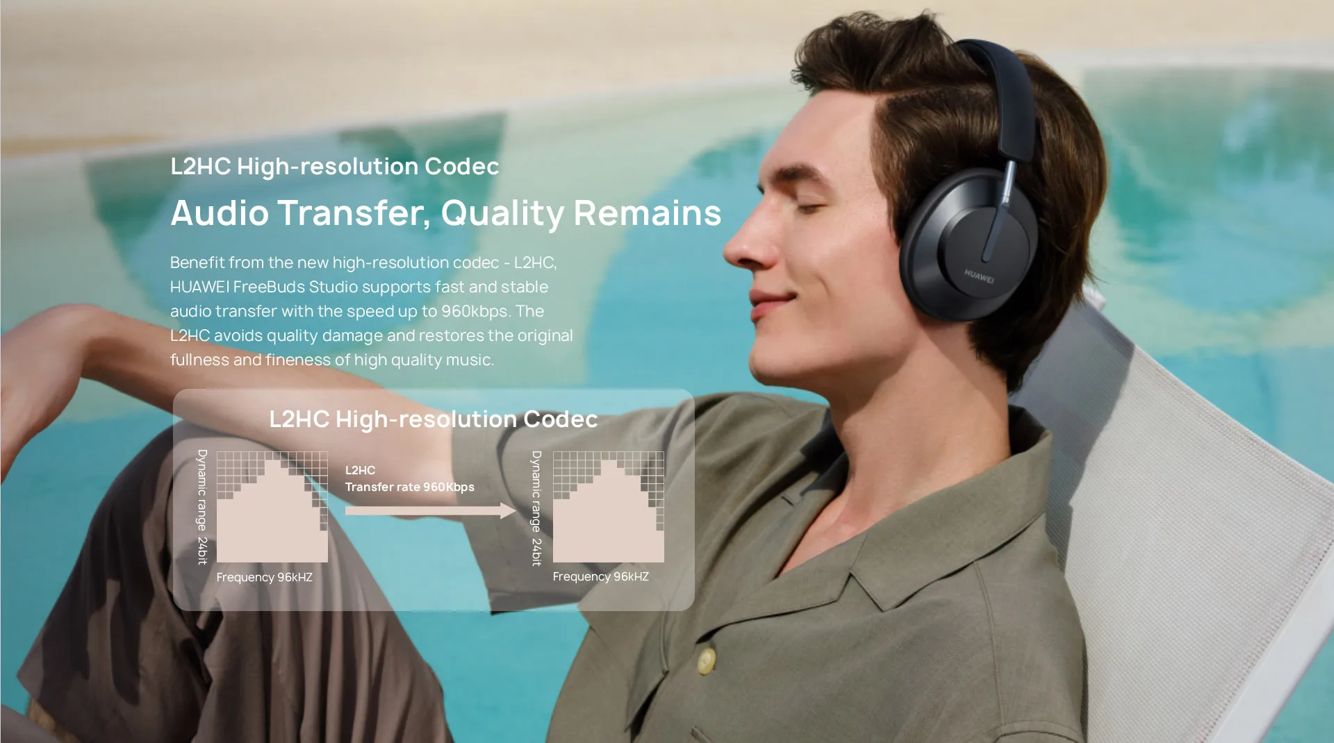Благодаря новой codec-L2HC с высоким разрешением HUAWEI FreeBuds Studio поддерживает быструю и стабильную передачу звука со скоростью до 960 кбит/с. L2HC снижает потери качества и восстанавливает оригинальную полноту и тонкость высококачественной музыки.