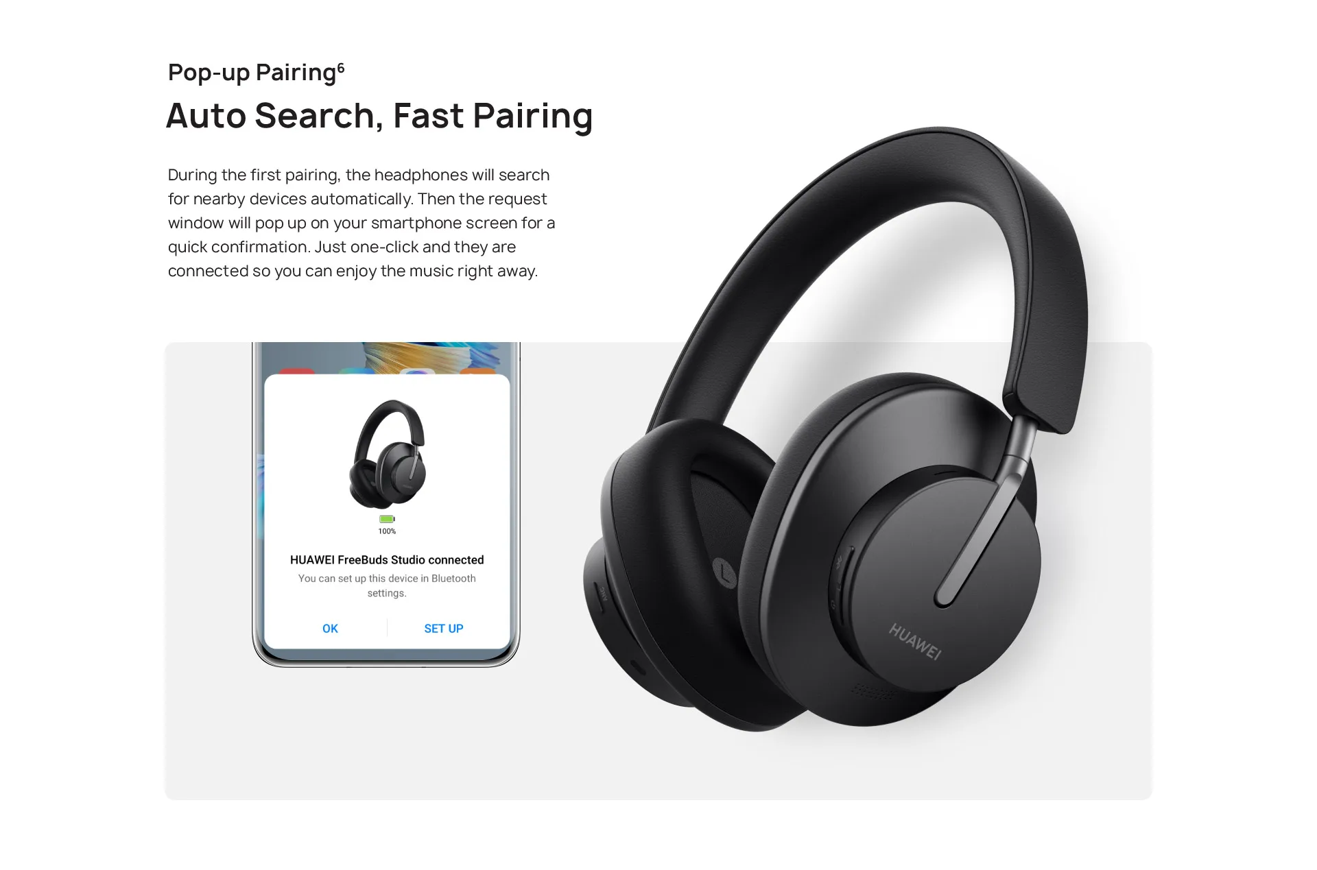 Во время первого сопряжения наушники будут автоматически искать соседние устройства. Затем окно запроса появится на экране вашего смартфона для быстрого подтверждения. Просто один клик и они подключены, так что вы можете наслаждаться музыкой сразу.