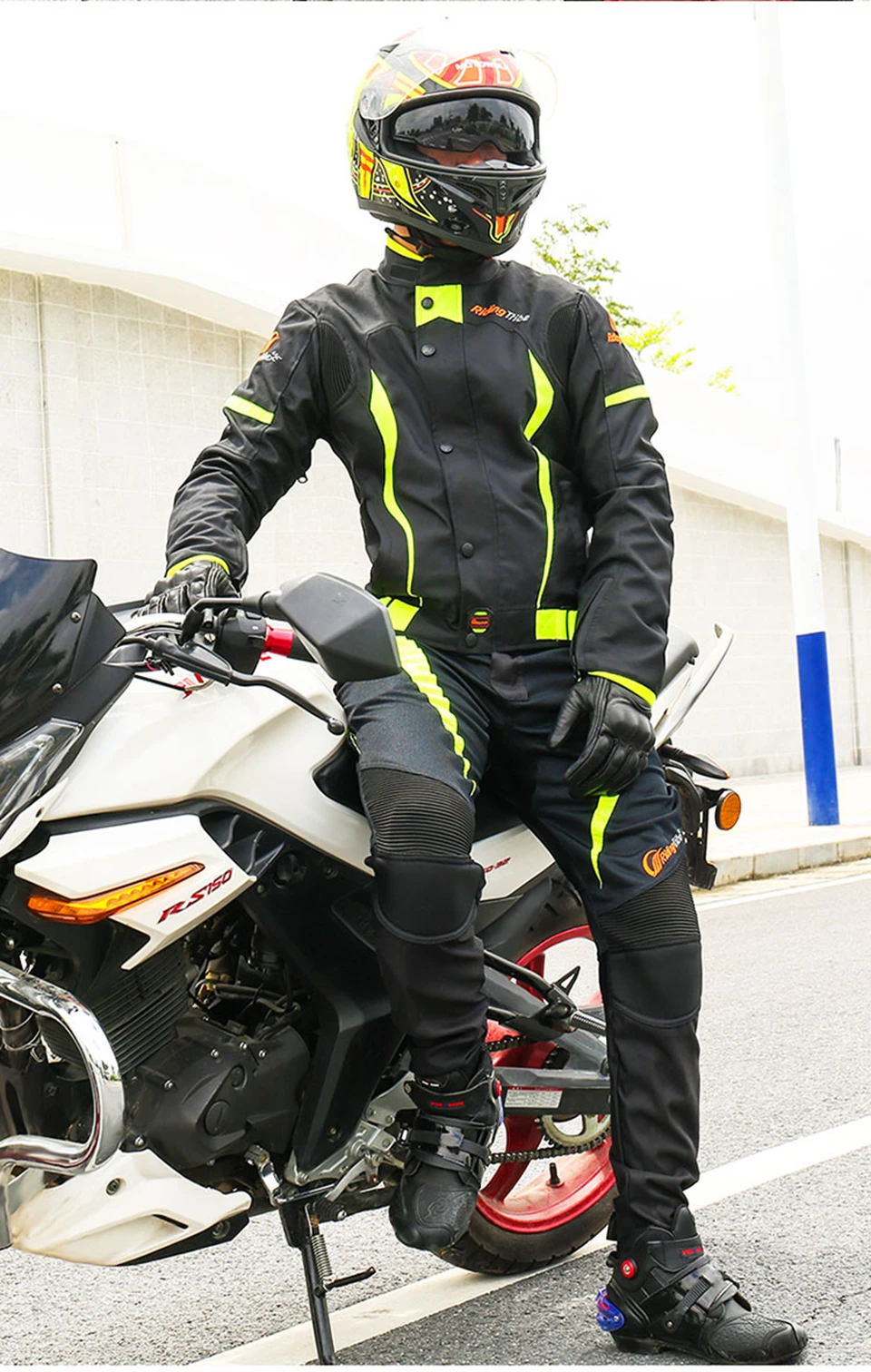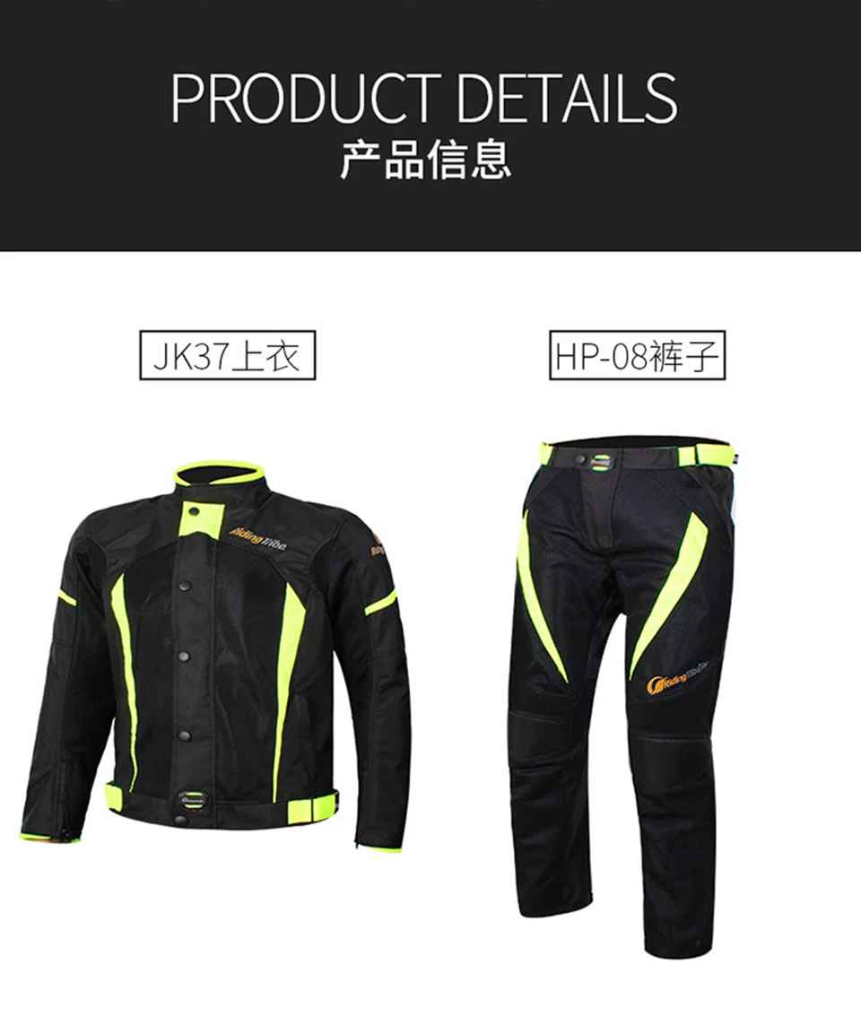 Бренд: PRO-BIKER Подходящий сезон: весна/лето/осень/зима Подкладка: нейлон Стиль: Топ JK37 + брюки HP-08 Цвет: флуоресцентный зеленый/черный Материал: сетка Оксфорд/полиэфирная сетка/Кабо/светоотражающая ткань