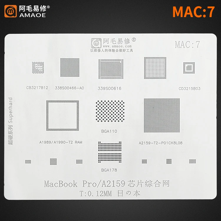 Трафарет для реболлинга BGA Mac MacBook a1534 /sr2zy A1706 /A1707 A2159-T2/ A1989 / A1990 DDR SSD pro M1 CPU |